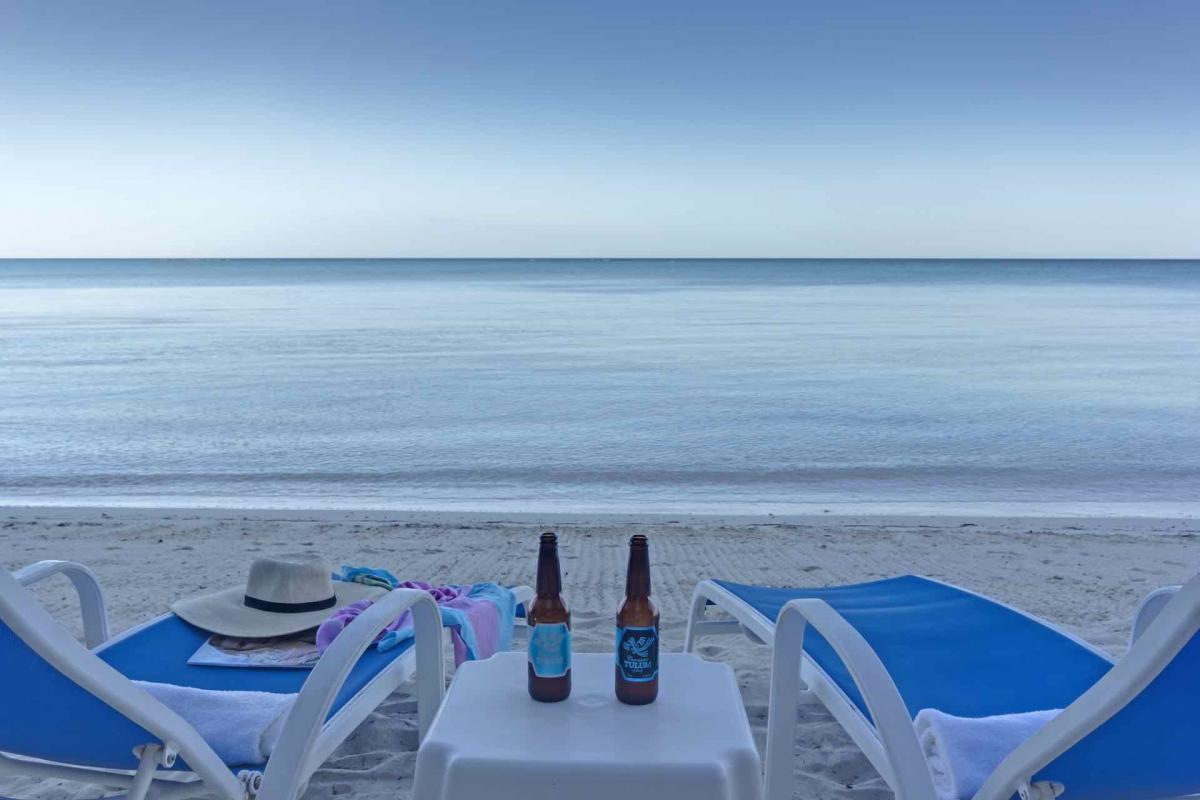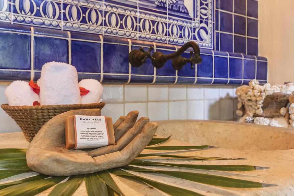 Hacienda Kass is a visually stunning representation of the traditional Mexican Hacienda-style architecture, the only one of its kind on Soliman Bay. An extraordinary, covered entranceway welcomes you to the exquisite villa, a perfect combination for those looking for style, function, privacy and comfort on the beach. The décor of this tastefully decorated & spacious home, from the formal couches, to the luxurious beds and leather chairs were custom made or hand carved in Mexico. Our extensive original art collection graces the walls of the house throughout. The 17 ft foot brick dome ceilings in each room were designed and constructed by fifth generation Mexican masons.