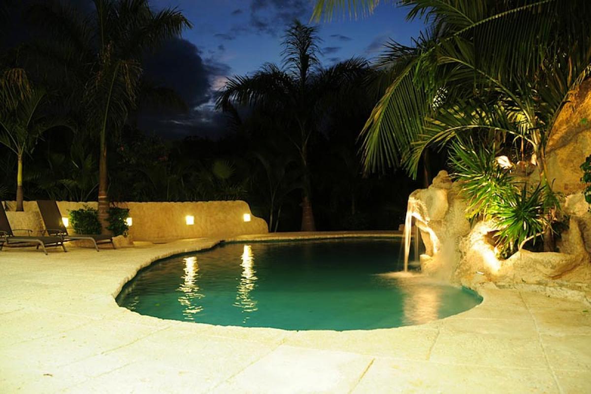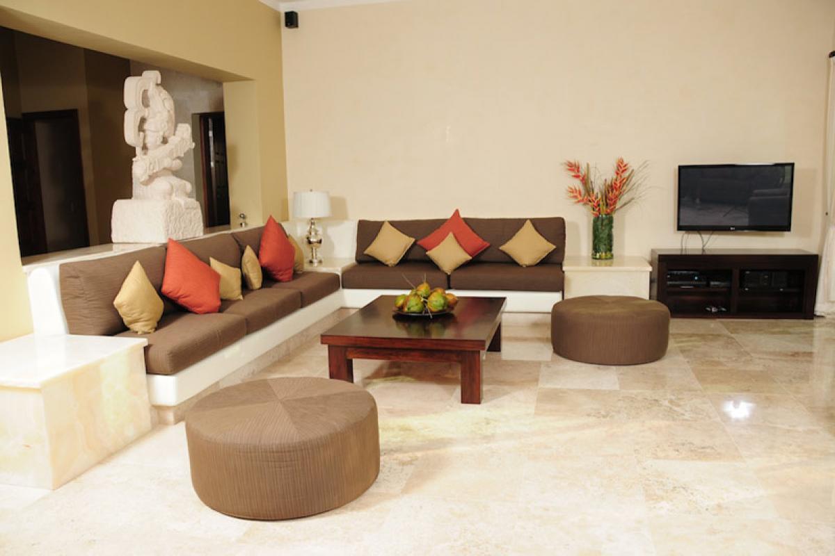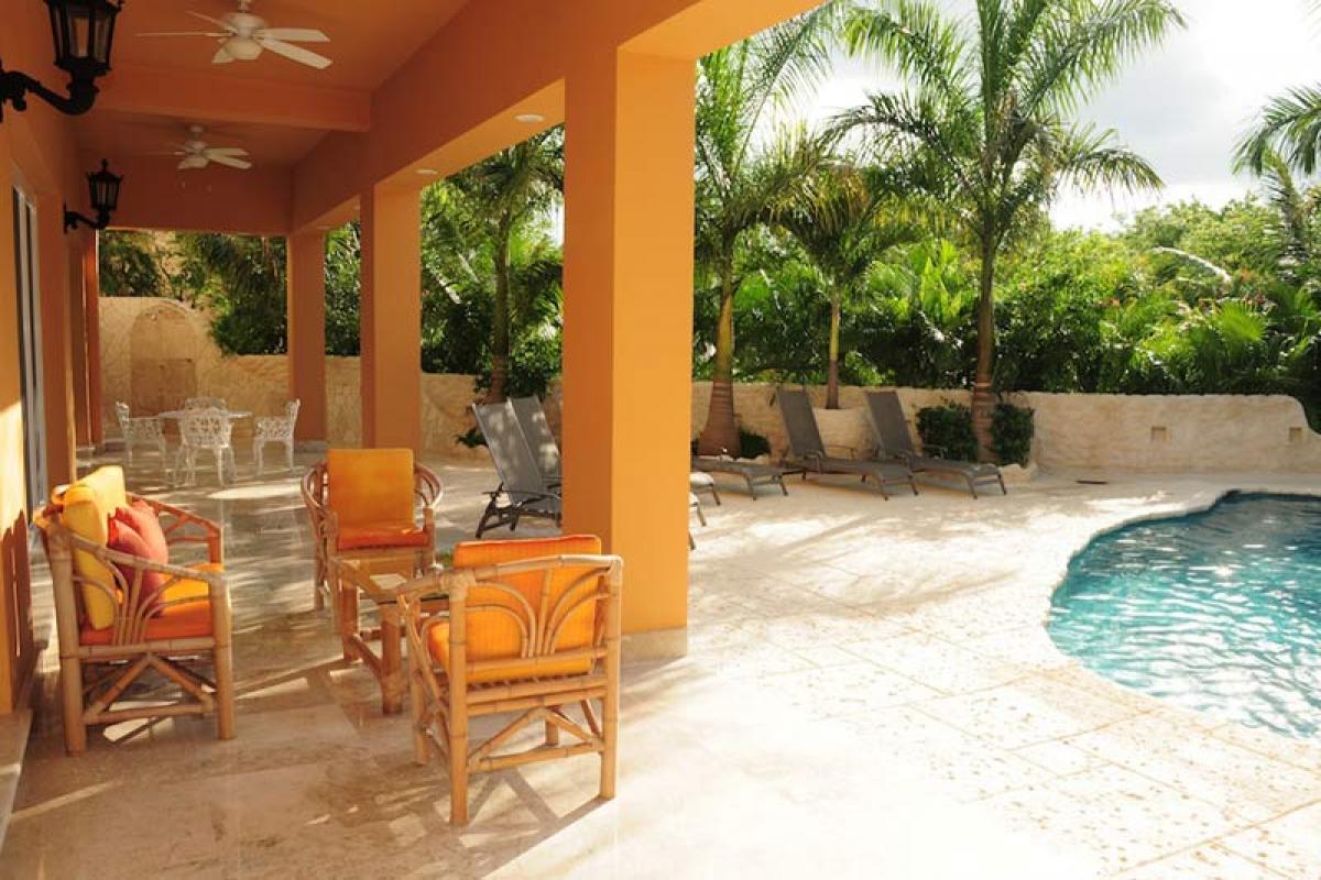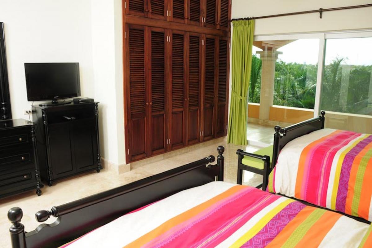 Hacienda Las Palmas features five artistically designed air-conditioned bedrooms and five bathrooms. One bedroom is furnished with two queen size beds and four bedrooms are furnished with one king size bed. One bedroom is located on the first floor with direct access to the pool area. The other four suites are located on the second floor and are connected by a long Romeo and Juliet balcony, overlooking the pool and golf course. Relax by the pool or talk a short walk to the beach. For the golf enthusiasts, the Puerto Aventuras Golf Course is only a three minute walk away. Gaze at the stars at night on the 360 degree rooftop observation deck. Enjoy indoor or outdoor dining and let the chef prepare you a gourmet meal that is sure to impress. Hacienda Las Palmas is the perfect Riviera Maya villa rental for a memorable vacation.