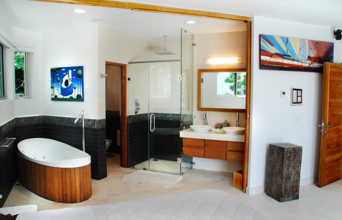 Kite House offers 4 very unique bedrooms with en-suite bathrooms that can accommodate up to 8 adults, plus 2 teens. The villa offers truly unique views from the bedrooms. The master suite opens up onto the pool deck where you can get a glimpse of the Caribbean Sea. The second bedroom, also known as the Mayan bedroom boasts unique views of the ancient Mayan Ruins! The third bedroom is considered to be the jungle bedroom as your terrace opens up to lush tropical gardens and jungle, and hence captivates that feeling of privacy and seclusion, yet just minutes away from the bustling Playa del Carmen! The fourth bedroom is considered to be a loft with it's pull out king bed, and upper mezzanine that also has room to host another 2 guests with the second king size bed.