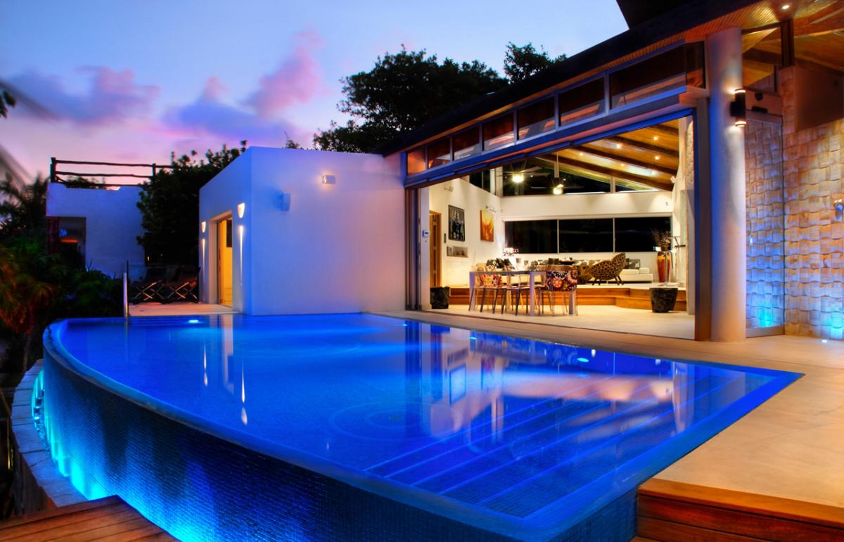 Built in 2011, Kite House defines the concept of state of the art technology with its filtered circulating air system, automated black out curtains, armored and sound proof glass doors and windows. The infinity pool uses no chemicals, and has a “swim against the current” system using a 5.5-horsepower motor for those guests who wish to keep in top shape while on holiday. The large Jacuzzi in the pool area can fit up to 9 people.