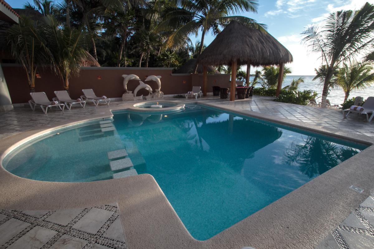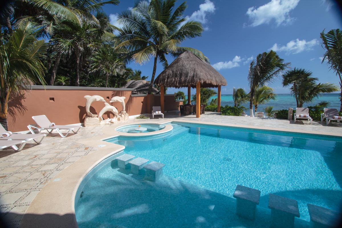 Lol-Beh is a luxurious 12 bedroom beachfront villa in the Mayan Riviera. It is located on the white sandy beaches of Soliman Bay. With 8600 sq. feet of space, high ceilings, spacious rooms, private pool, and a rooftop terrace which gives a 360 degree view of the entire bay.