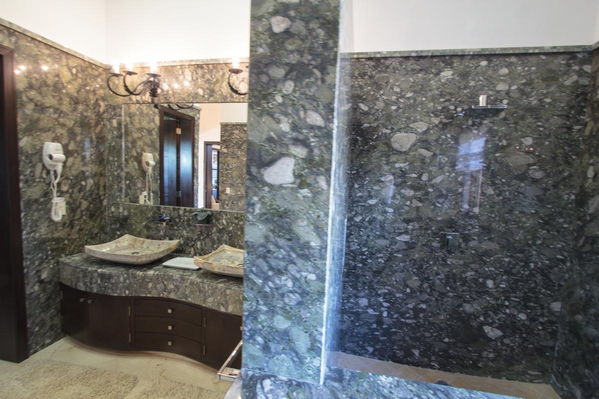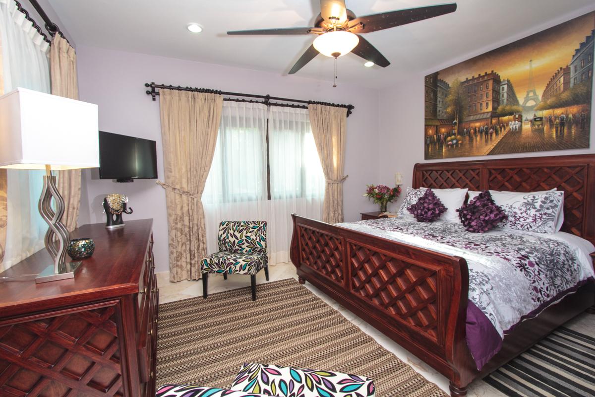 - Bedroom 5: King bed, en suite bathroom with shower, AC, ceiling fan, hairdryer, safety box, flat screen TV