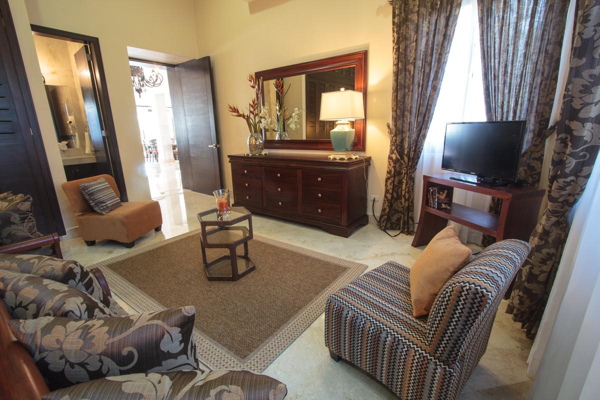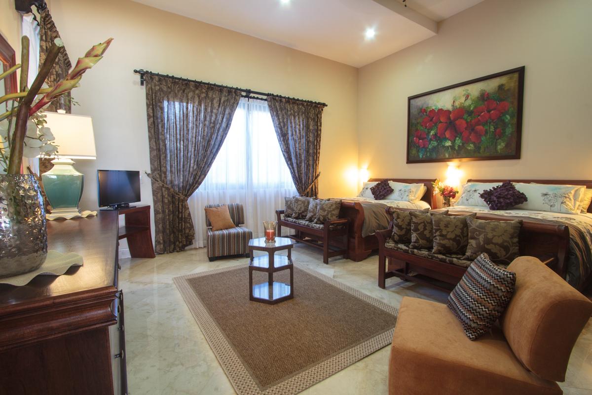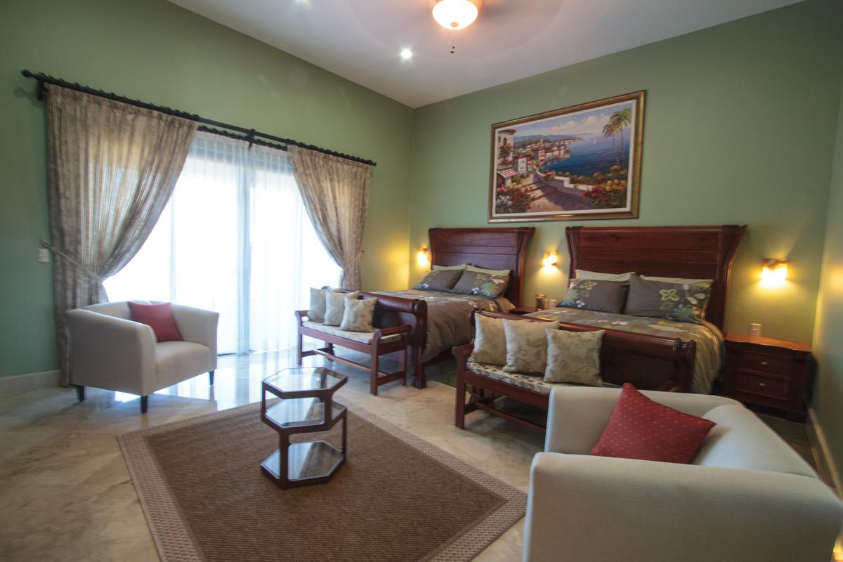 - Bedroom 4: Two queen beds, en suite bathroom with bathtub and shower, AC, ceiling fan, hairdryer, safety box, flat screen TV