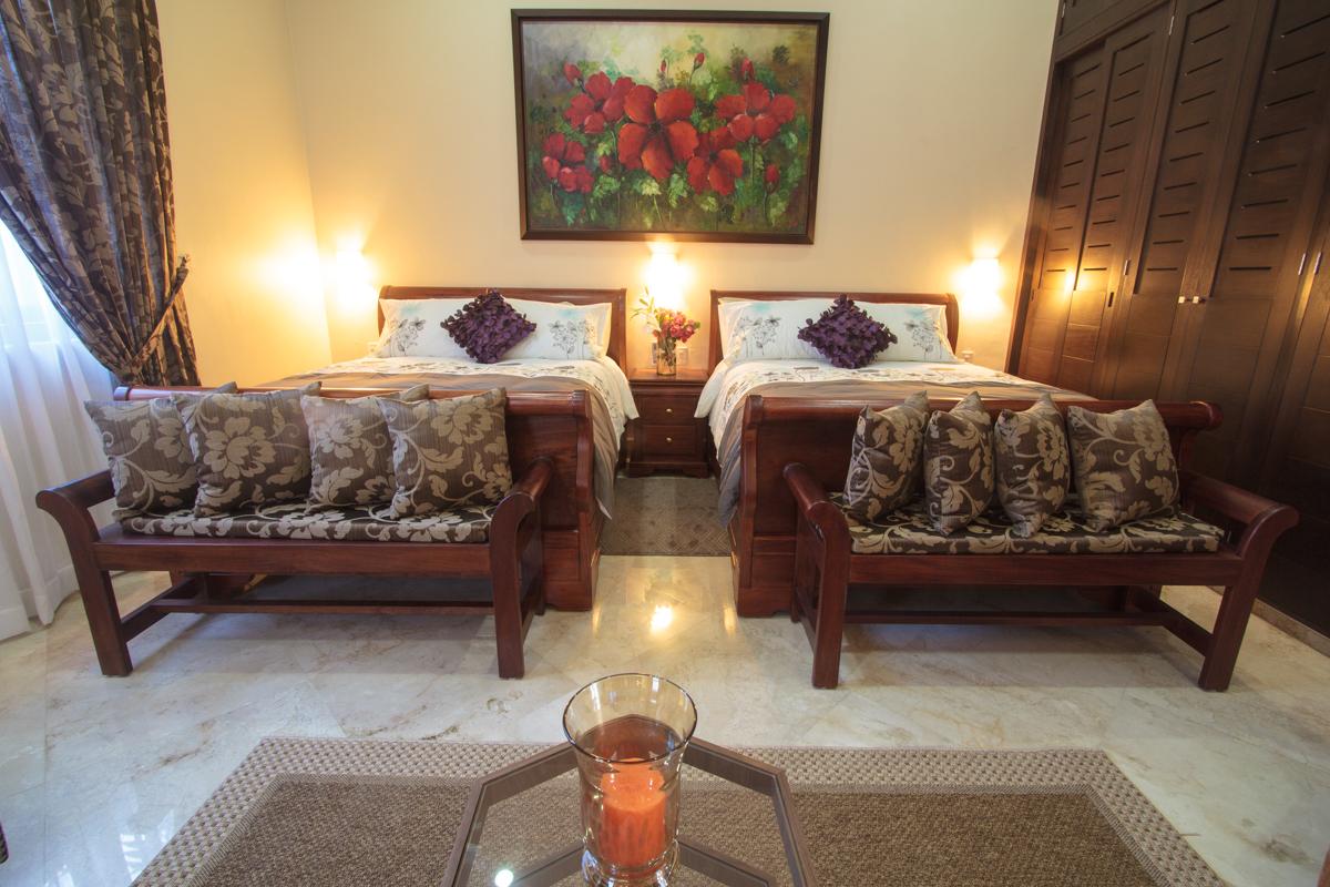 - Bedroom 8: Two queen beds, en suite bathroom with shower, AC, ceiling fan, hairdryer, safety box, flat screen TV