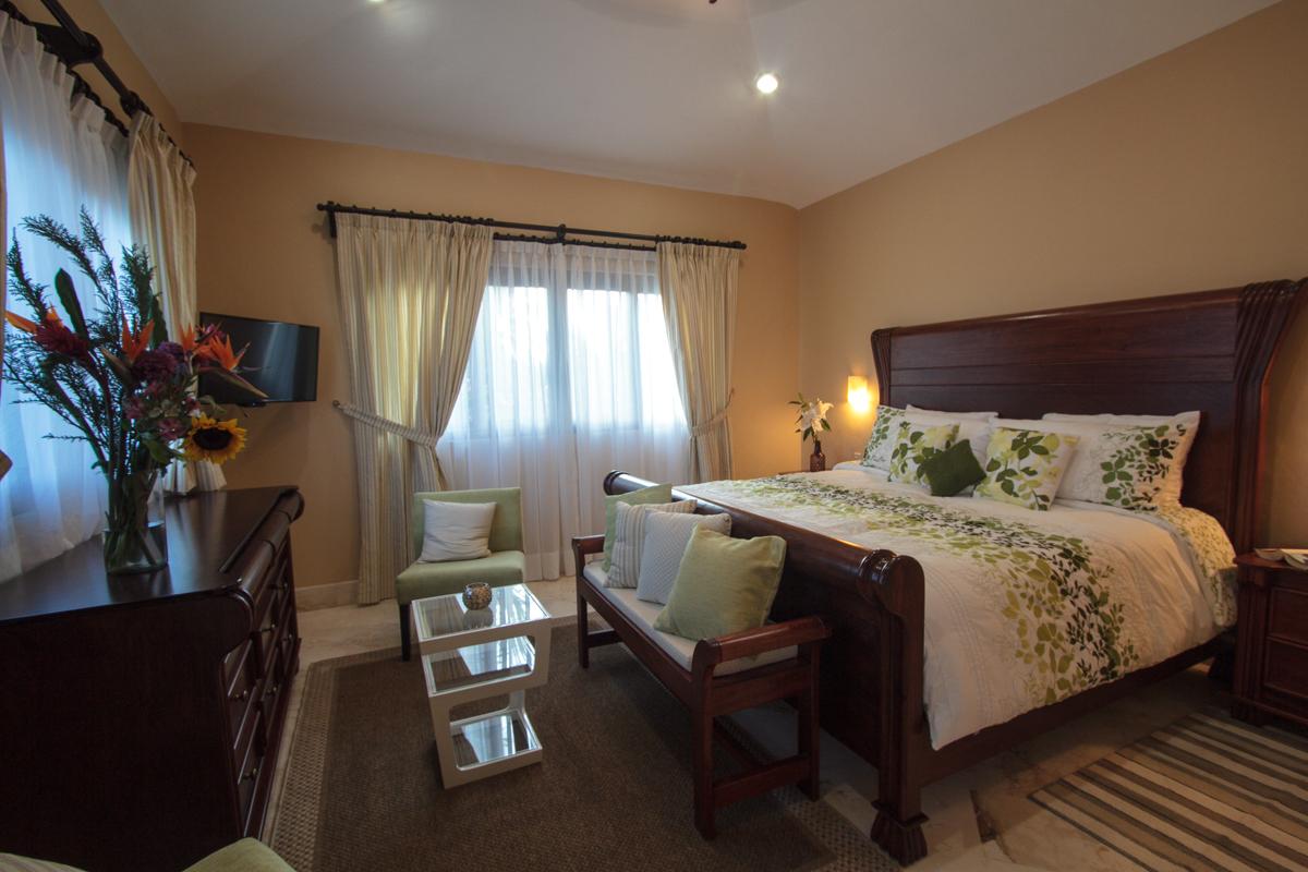 - Bedroom 9: King bed, en suite bathroom with shower, AC, ceiling fan, hairdryer, safety box, flat screen TV
