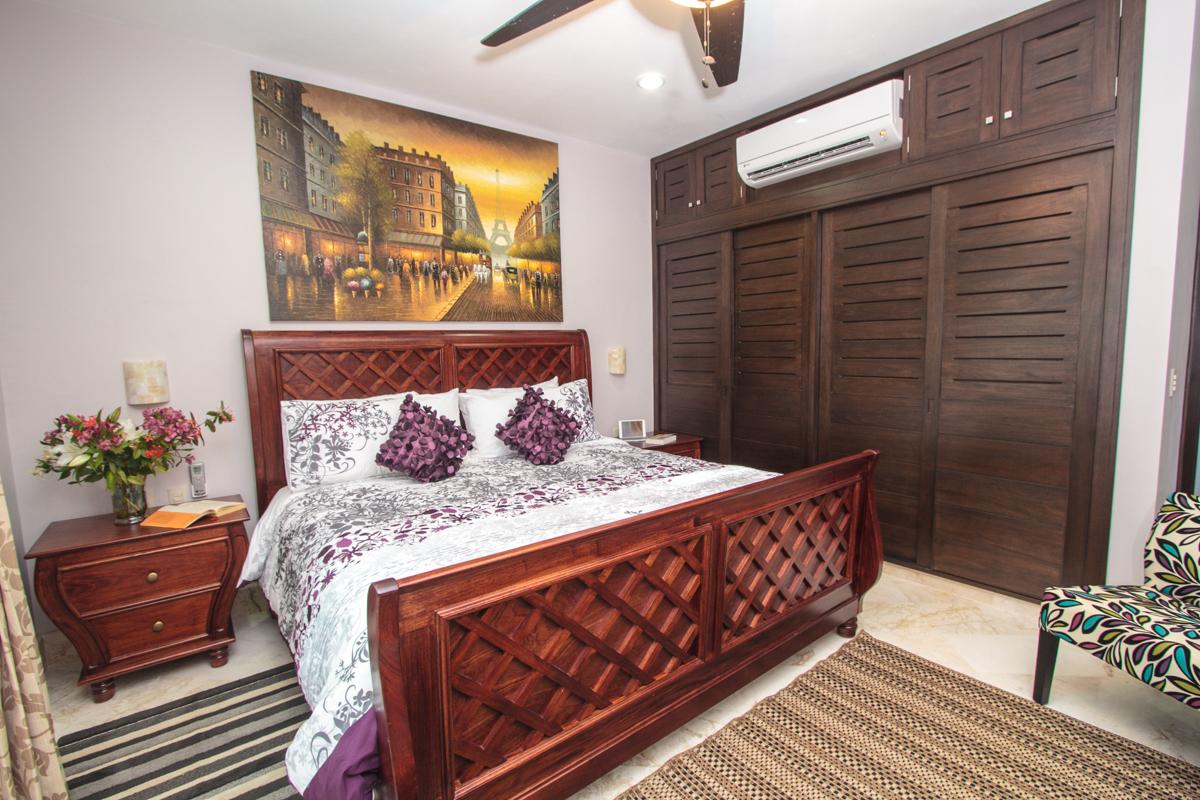 - Bedroom 2: King bed, en suite bathroom with shower, AC, ceiling fan, hairdryer, safety box, flat screen TV