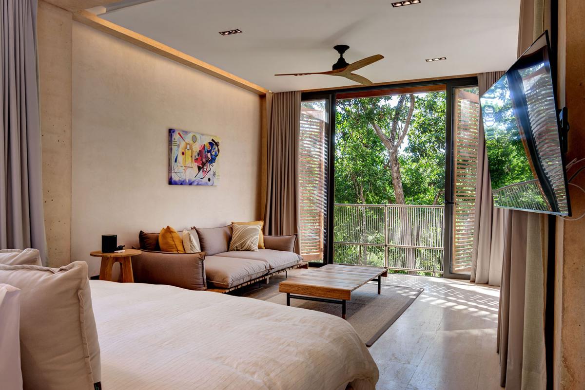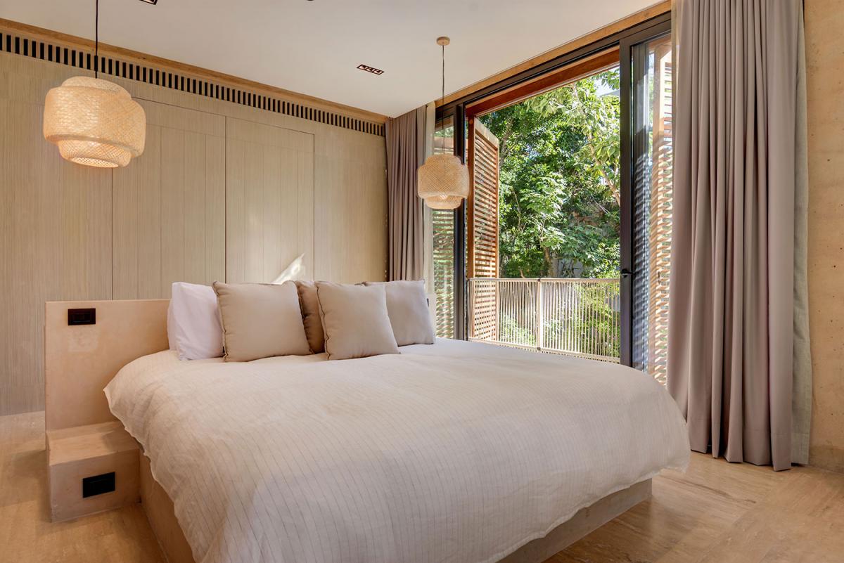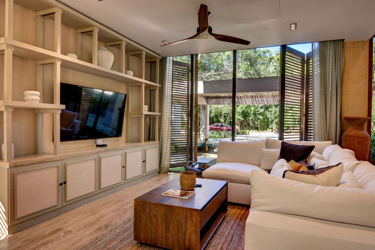 Accommodating up to 10 guests, this Riviera Maya villa is spacious and refined, featuring contemporary furnishings that complement the tropical setting. The primary bedrooms stand out with walk-in closets, private lounges, and balconies that boast scenic golf course and lake views. Designed for comfort and tranquility, Palm Villa offers a serene escape while remaining stylishly connected to nature's splendor. Perfect for those seeking an intimate yet luxurious vacation, this villa sets a new standard for a Riviera Maya vacation.