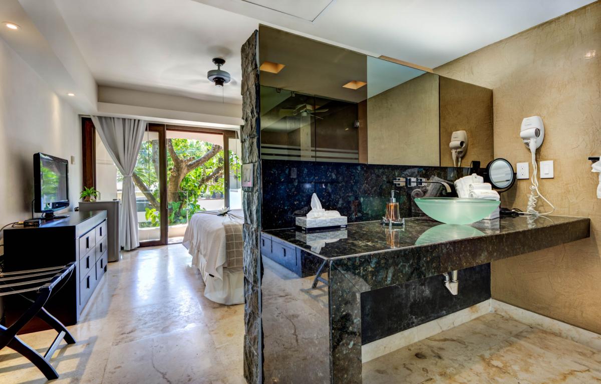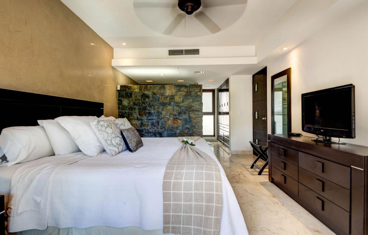 | Second level, King bed, en suite bathroom with shower, AC, ceiling fan, flat panel TV, independent entrance, Infinity pool, mosquito screens, ocean views with private terrace, outdoor lounge furniture, Satellite flat screen TV, telephone, toiletries, walk in closet, wireless internet access |
