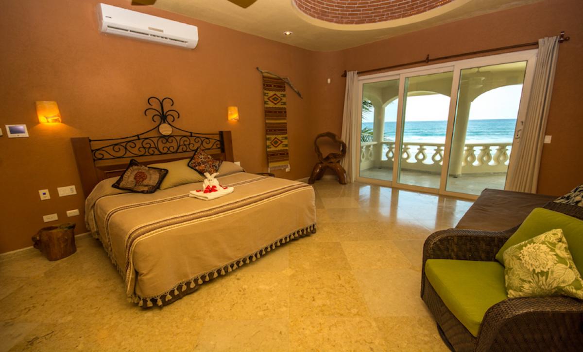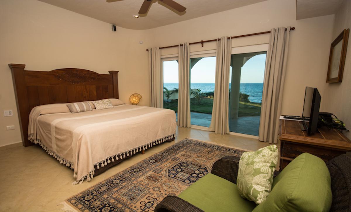 - Bedroom 2: King bed, single bed, en suite bathroom with shower and bidet, AC, balcony, ceiling fan, ocean view, safe