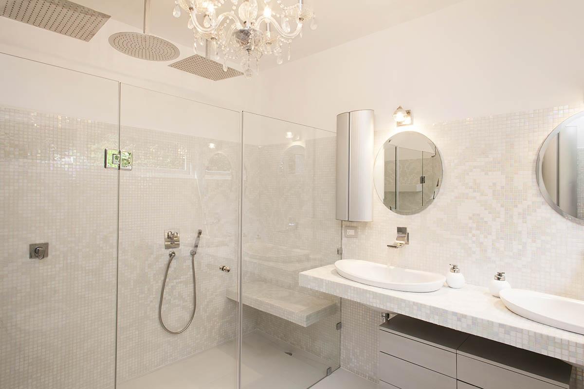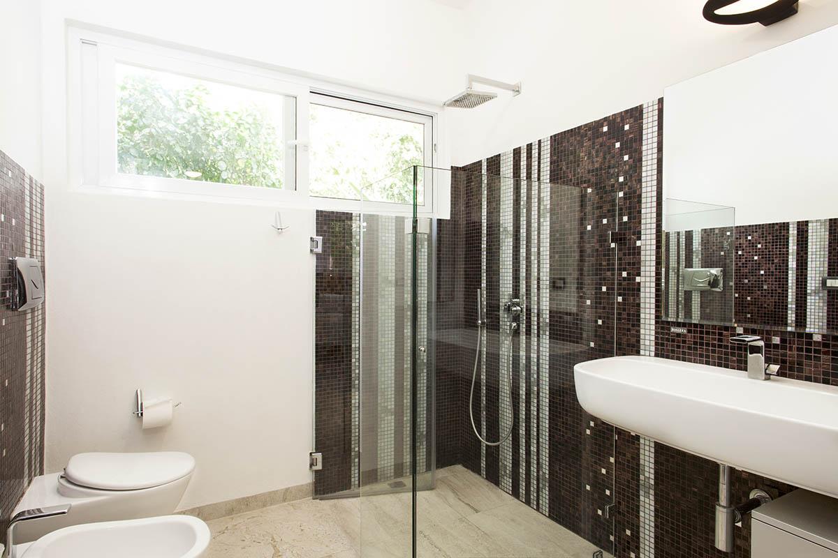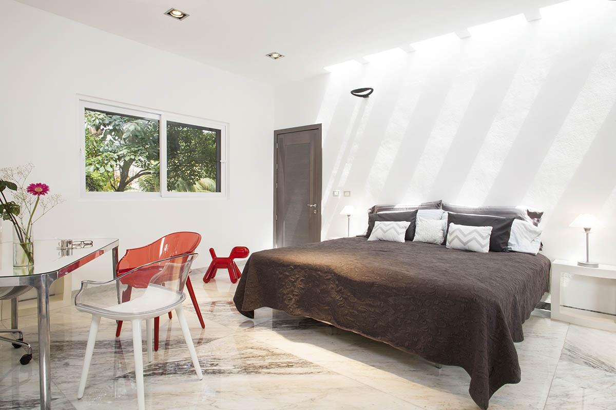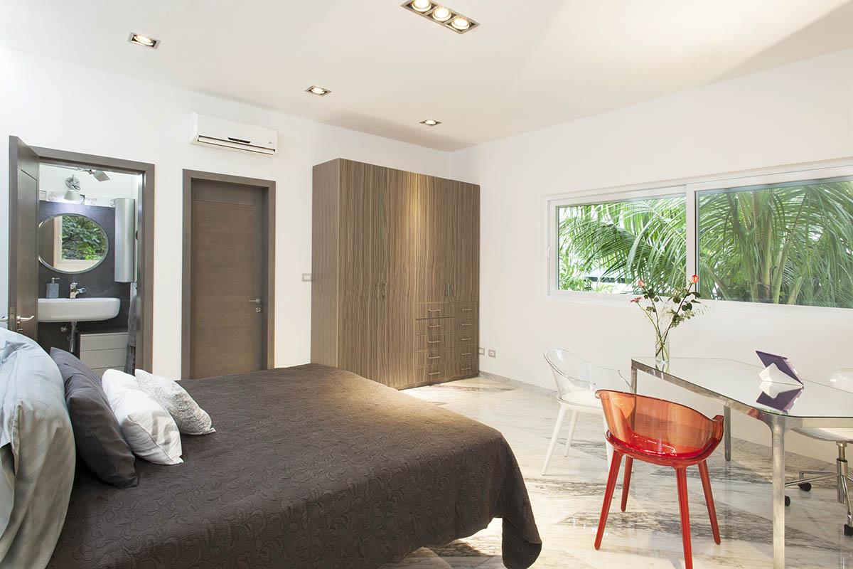 The villa offers six bedrooms, each with air conditioning and ceiling fans, each furnished with a King size bed and ensuite Italian-style bathroom. The master room has a Jacuzzi tub for two with whirlpool and airpool while the second master room has a simple bathtub as well as a shower. Three bedrooms are equipped with Smart TV with s Sky Plus, and access to internet (Netflix, Youtube etc).