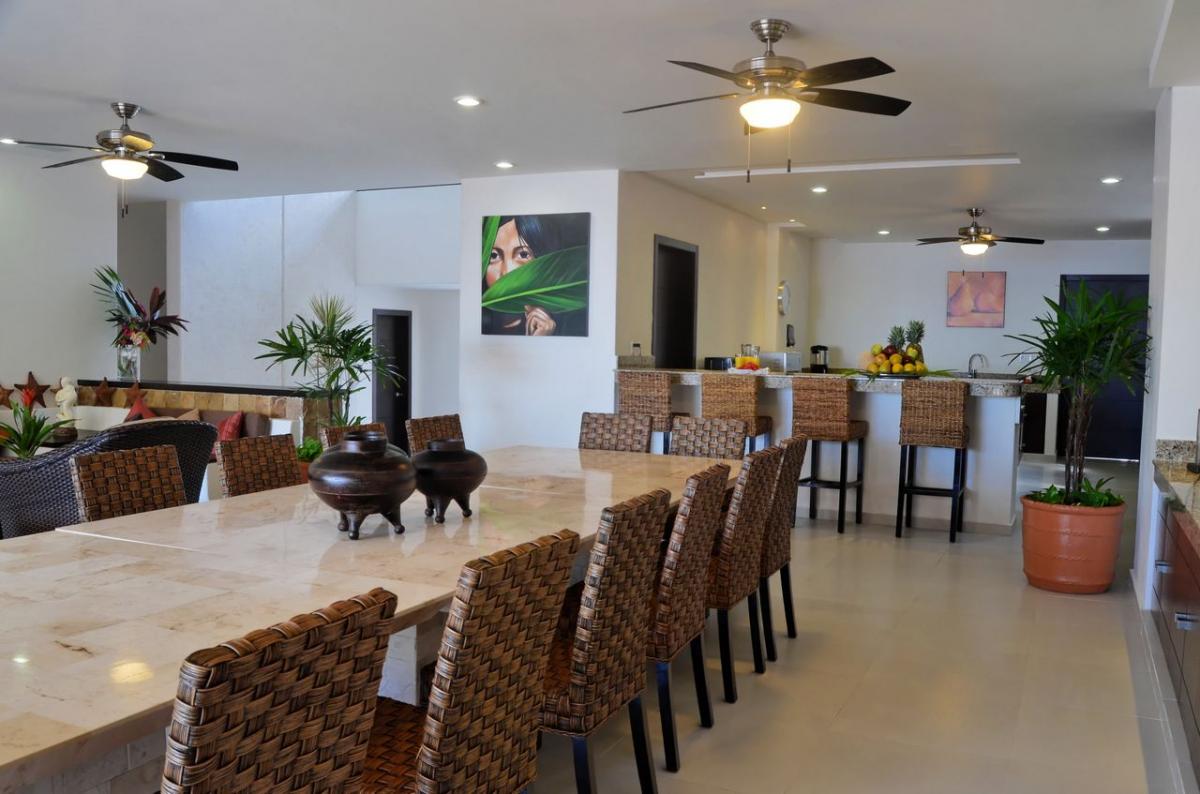 Villa Bellamar is a gorgeous 13 bedroom, 13 bathroom, beachfront property in Akumal. This quiet villa was built with luxury and comfort in mind. The open floor plan and spacious interior make it so easy to visit and entertain with your family and friends. Enjoy your meals in the large dining area off the kitchen or outside under the covered patio. You will be amazed at the views you'll take in as you eat, swim in the private pool or sunbathe on the rooftop deck. Feel free to take an afternoon siesta in one of the hammocks. This property can accommodate up to 40 adults making Villa Bellamar an ideal location for family celebrations, weddings or workshops. Come stay at Villa Bellamar and enjoy the old-fashioned hospitality and timeless elegance!