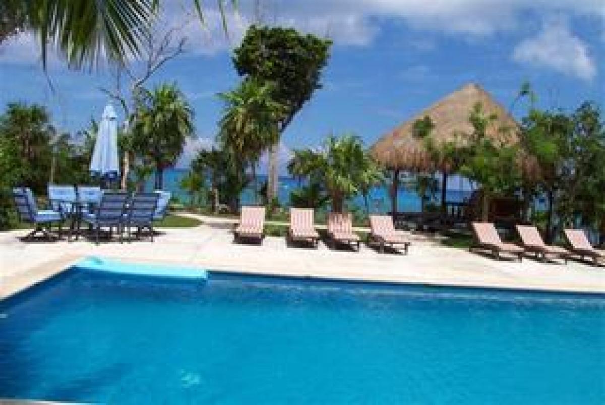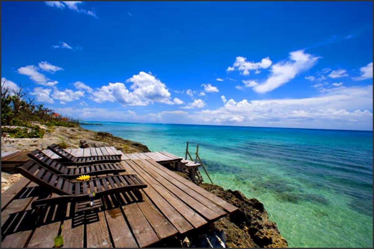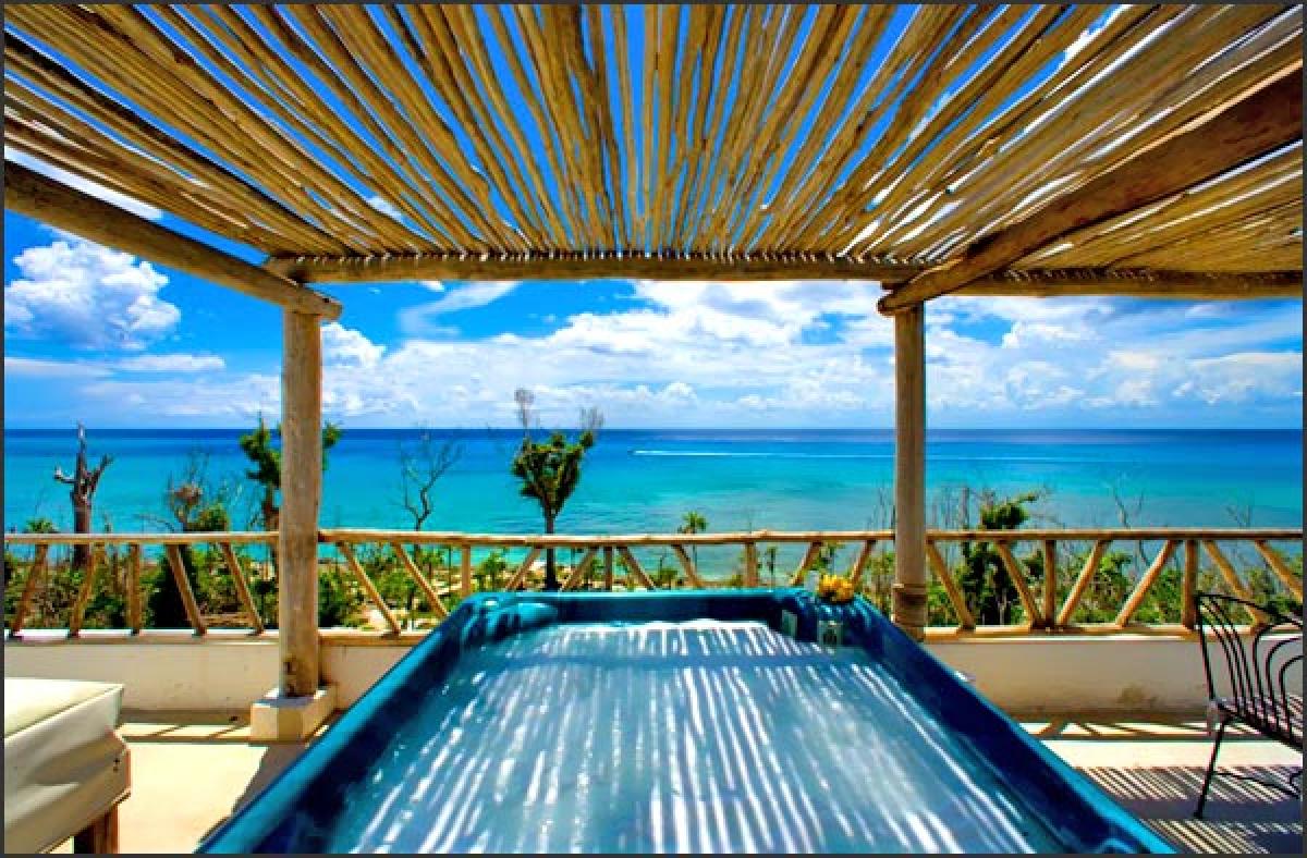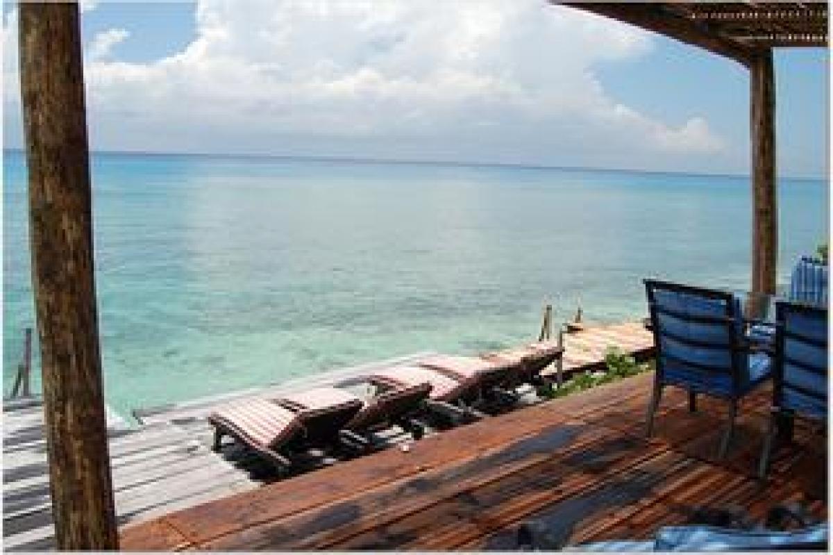 The best kept secret in Cozumel, Villa Eden is one of the most luxurious, private ocean front villas in Cozumel. It is a magnificent 5 bedroom home located right at the oceanfront, in a beautiful and very private setting, surrounded by a lush garden with a 40 foot freshwater pool looking at the Caribbean Sea. The villa is not a part of a complex, it is all yours. Two wooden decks for sunbathing, relaxing, and watching incredible sunsets are located 10 steps from the pool at the edge of the water with a ladder of 4 steps to assist you to the crystal clear water in front of the villa, which upon entry is 4 feet deep with a sandy bottom. All 5 bedrooms are facing the Caribbean sea and open to a small balcony or the pool garden. In addition to the large pool and ocean there is a third floor roof garden top with a bar for breathtaking views. A hot tub was added overlooking the ocean in 2009.