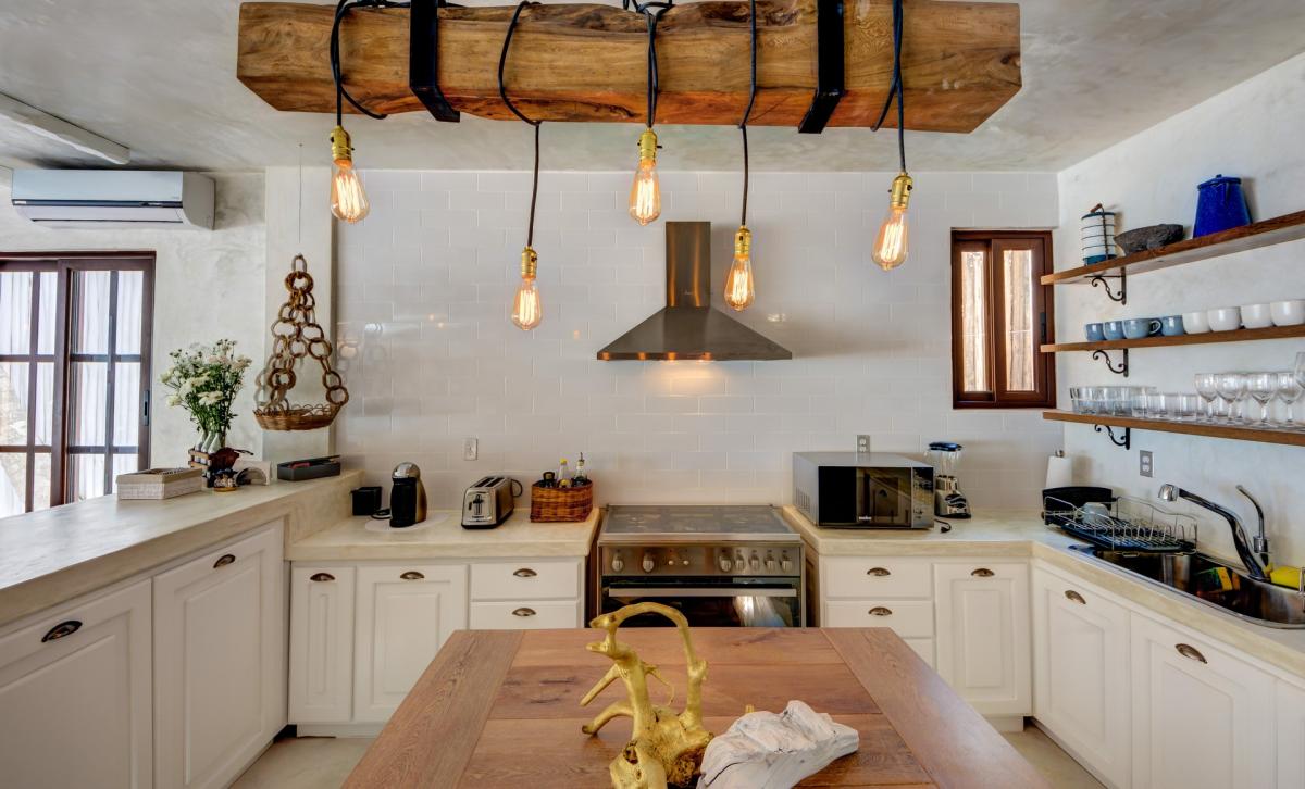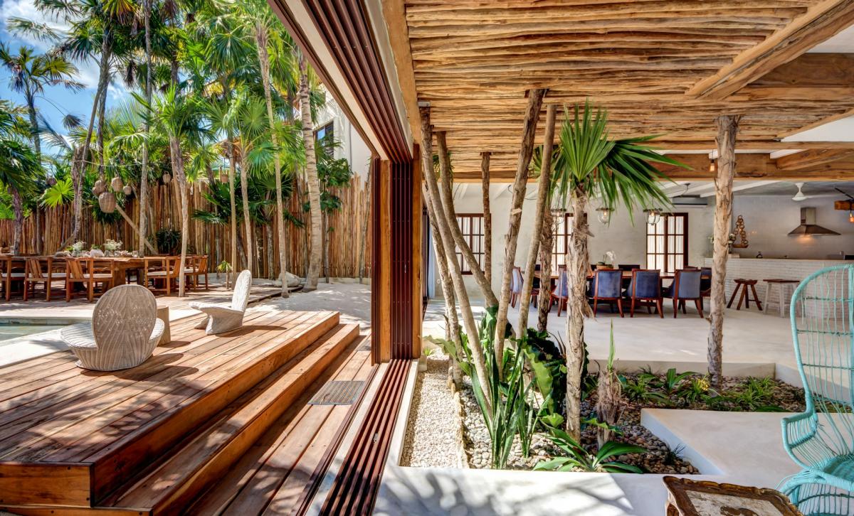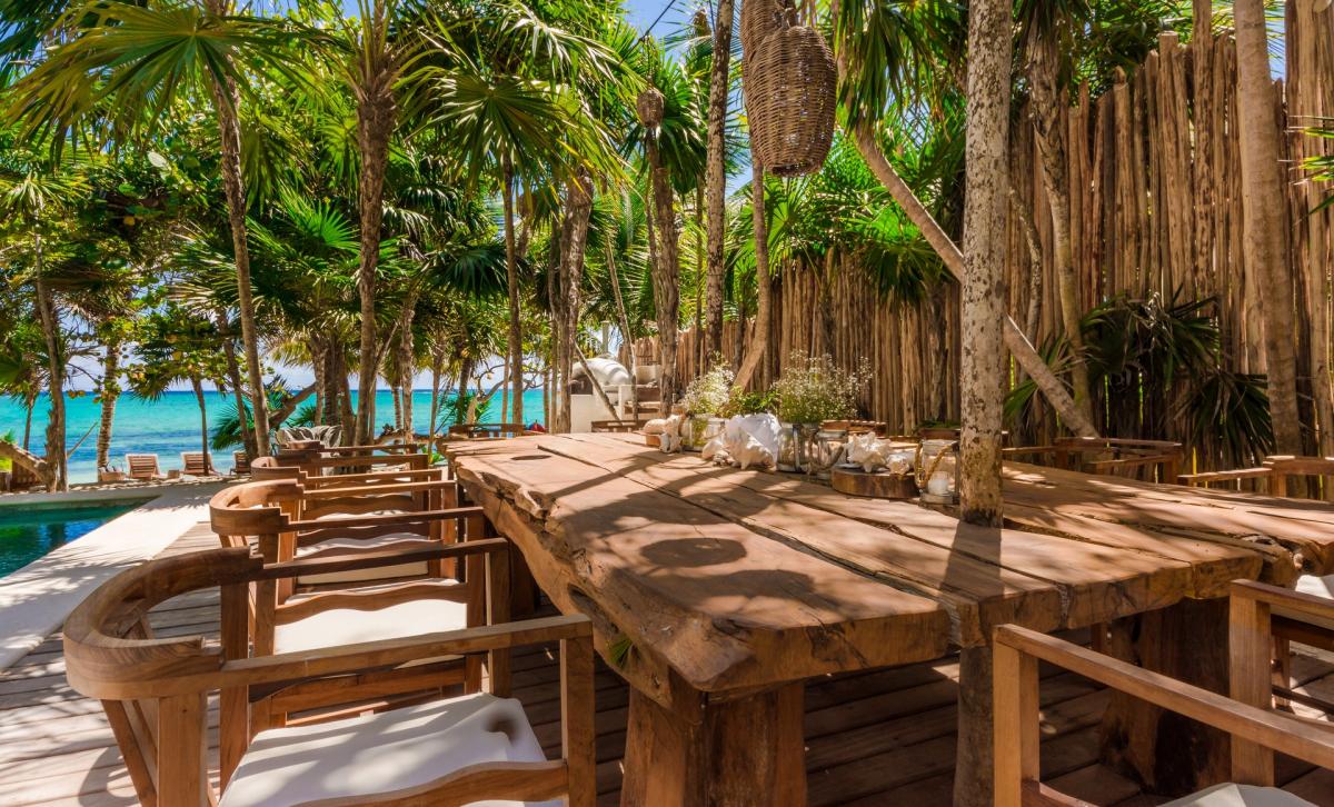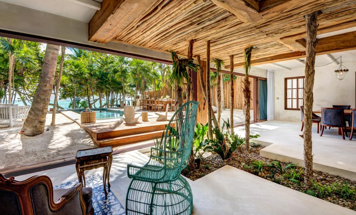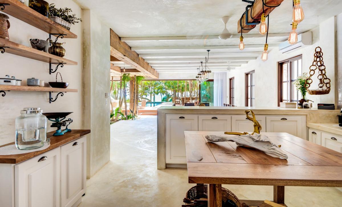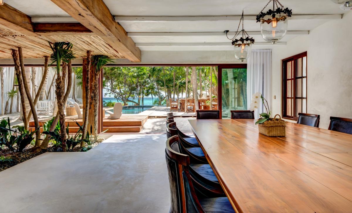 Situated between the lush, green mangrove jungle and a secluded beach of Soliman Bay, Villa La Semilla has been created to live harmoniously with nature and guests can savor a unique experience with the support and service that is synonymous with the La Semilla brand. The property boasts a private stretch of beachfront with spectacular views of the bay that you can enjoy from any one of the terraces adjacent to each bedroom. There are also two tiered rooftop terraces, one of which has a pool, for sunbathing by day and stargazing in the evening. The first floor living area has been created in an open-concept style with spacious kitchen, dining and living space that reveals a private garden veranda with infinity pool. This modern, rustic home has been created to evoke privacy, luxury and nature and is the perfect place to immerse oneself in the natural beauty of Mexico. The kitchen, dining table and living area are an open concept, where families can enjoy quality time, surrounded by floor to ceiling windows that offer views of the brilliant jungle which envelopes the Villa.