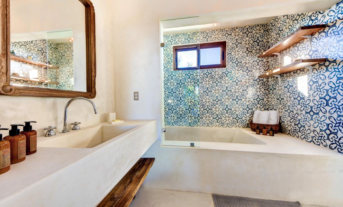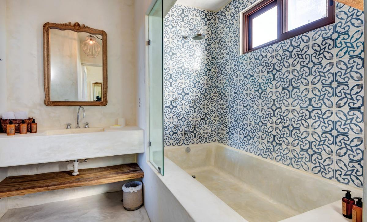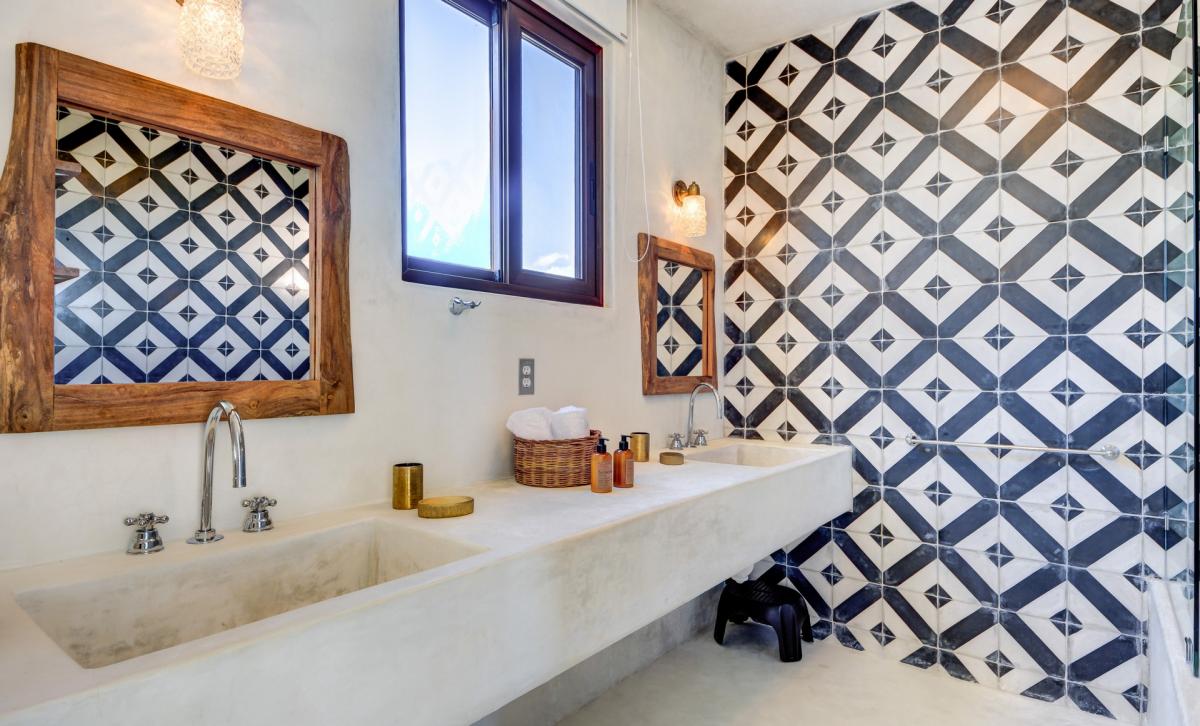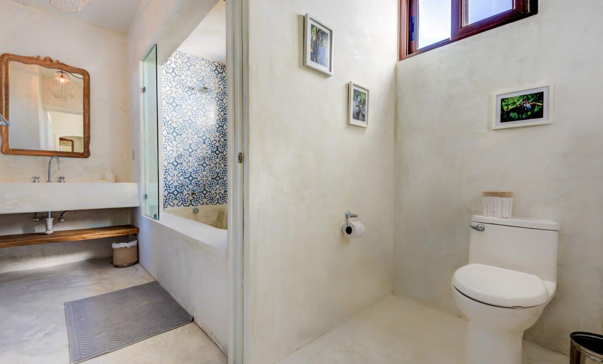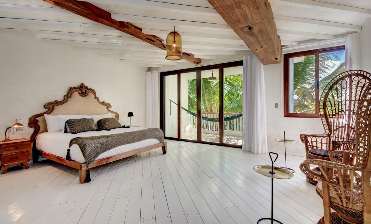 - Bedroom 4: Two double beds, en suite bathroom with shower and bathtub, AC, ceiling fan, closet, hammock, ocean view, private balcony