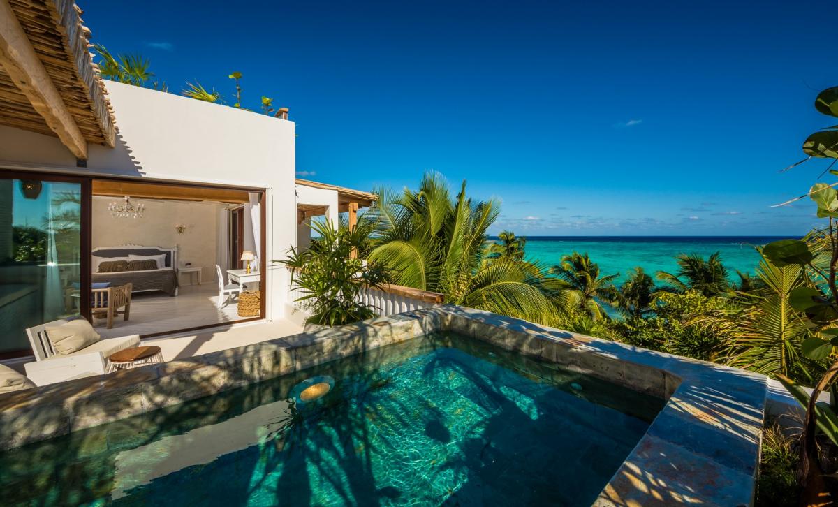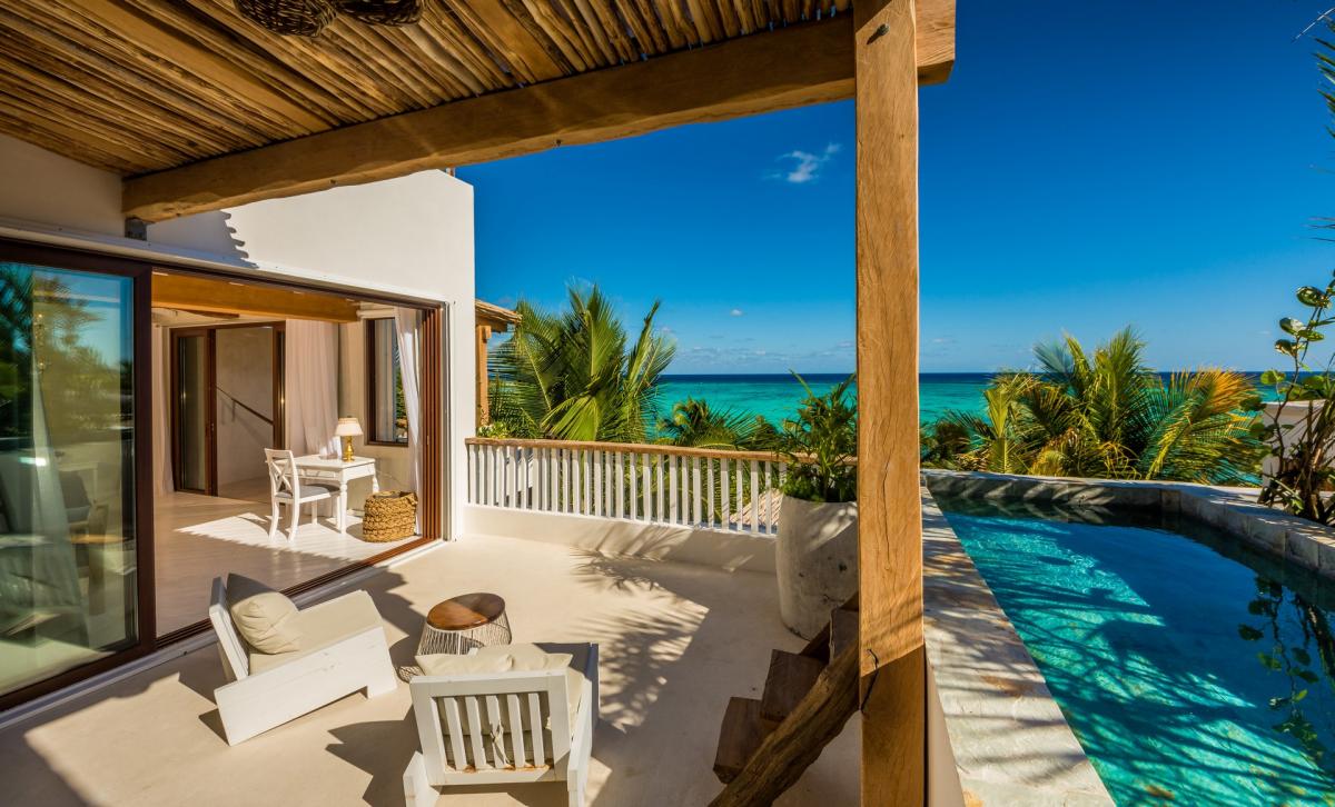 - Bedroom 1: Primary with king bed, en suite bathroom with shower and bathtub, terrace, AC, ceiling fan, hammock, ocean view, plunge pool