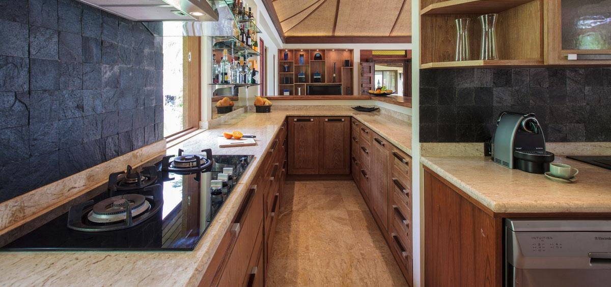 Each of the nine beachfront and sea view bedrooms at Villa Kalyana are drenched in unfolding views with the utmost attention to detail. The suites are highly appointed, with Smart Internet LED TV’s and Ipad / Ipod Docking Stations. Individual interior designs feature exquisite far eastern antiques, enhancing the Orient feel of the estate.