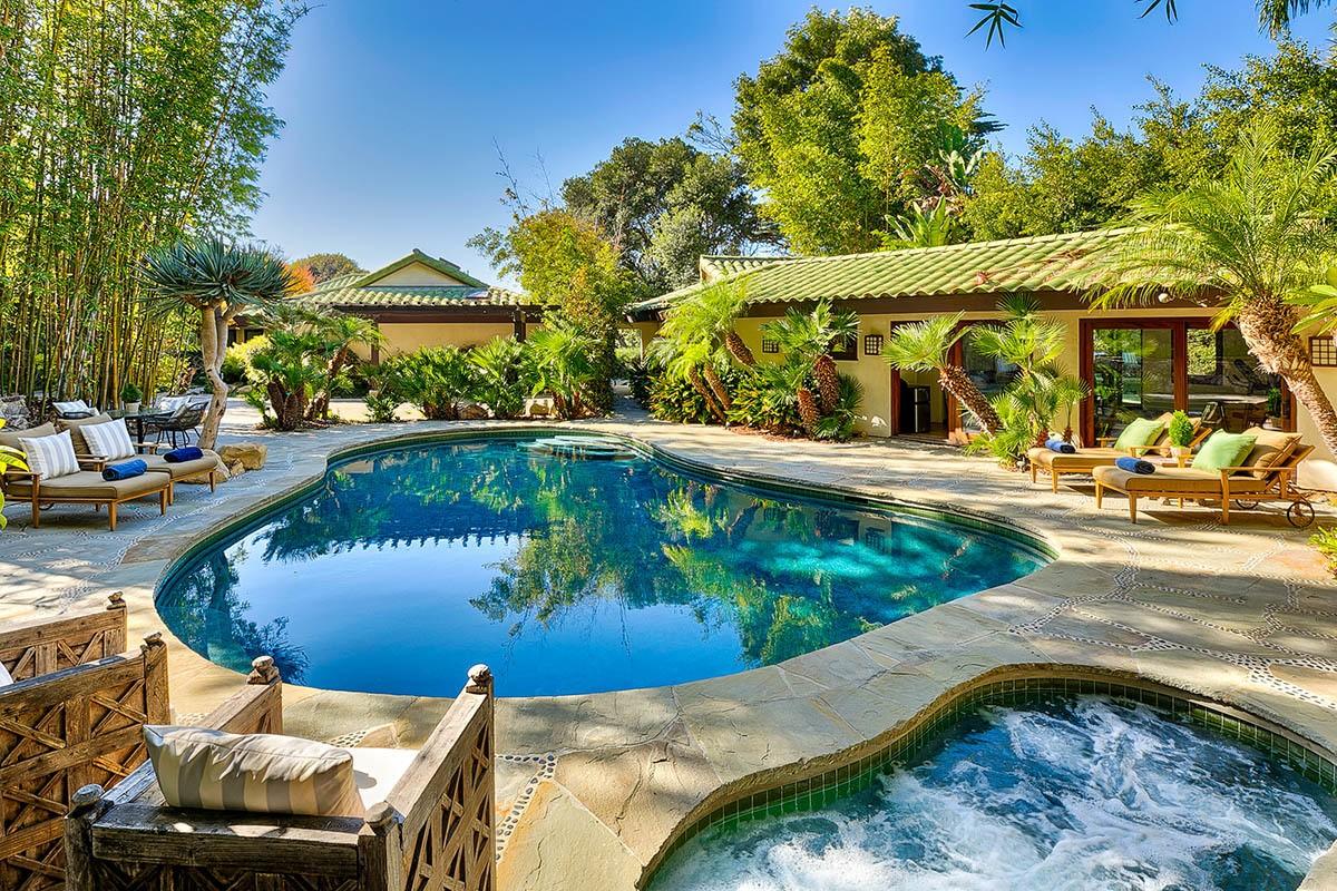 Enjoy the pool surrounded by lush tropical foliage that allows for the utmost privacy on your relaxing getaway. Birdview Beach Villa draws design and architechtural inspiration from both Hawaii and Bali and incorporates the oceanfront patios, cozy lounge areas, outdoor dining and entertaining, and lagoon-style pool.