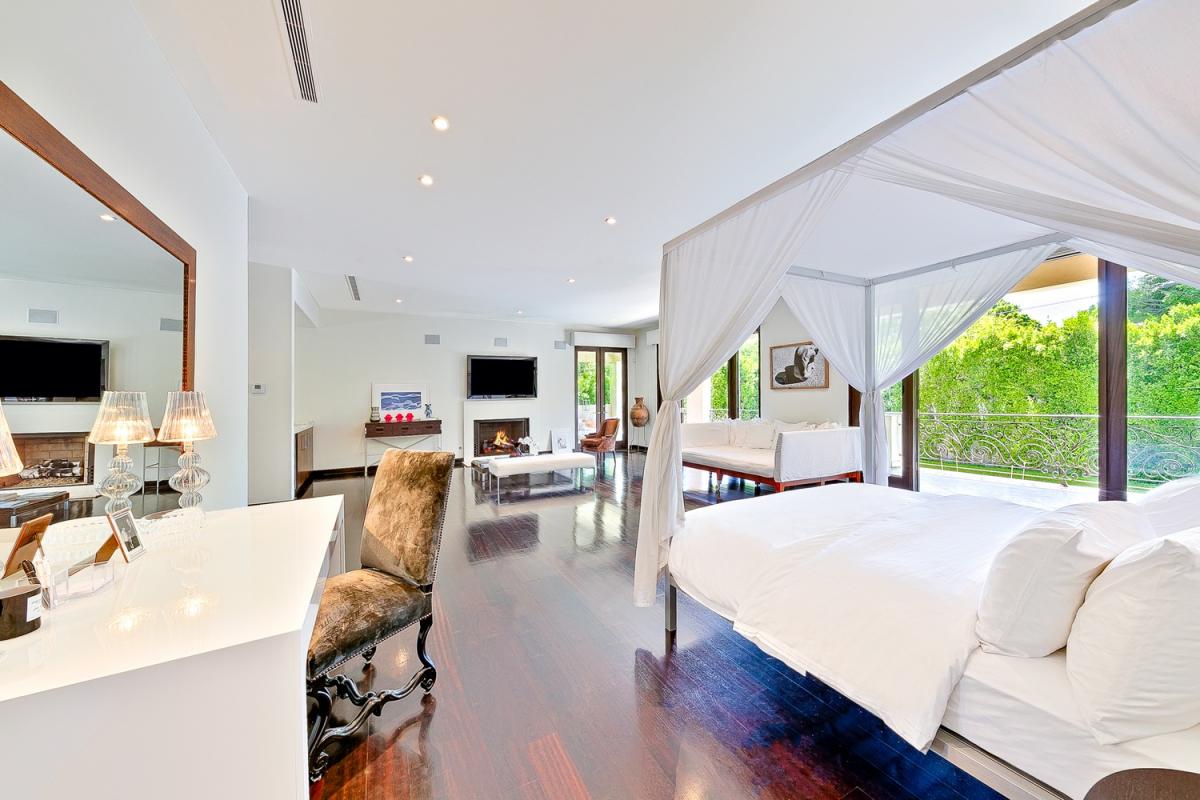 Primary: King size bed, Day bed, Ensuite bathroom, Rain/Steam shower, Dual Vanity, Jetted Tub, Bidet, Walk-in Closet, Television, Apple TV, Fireplace, Desk, Balcony