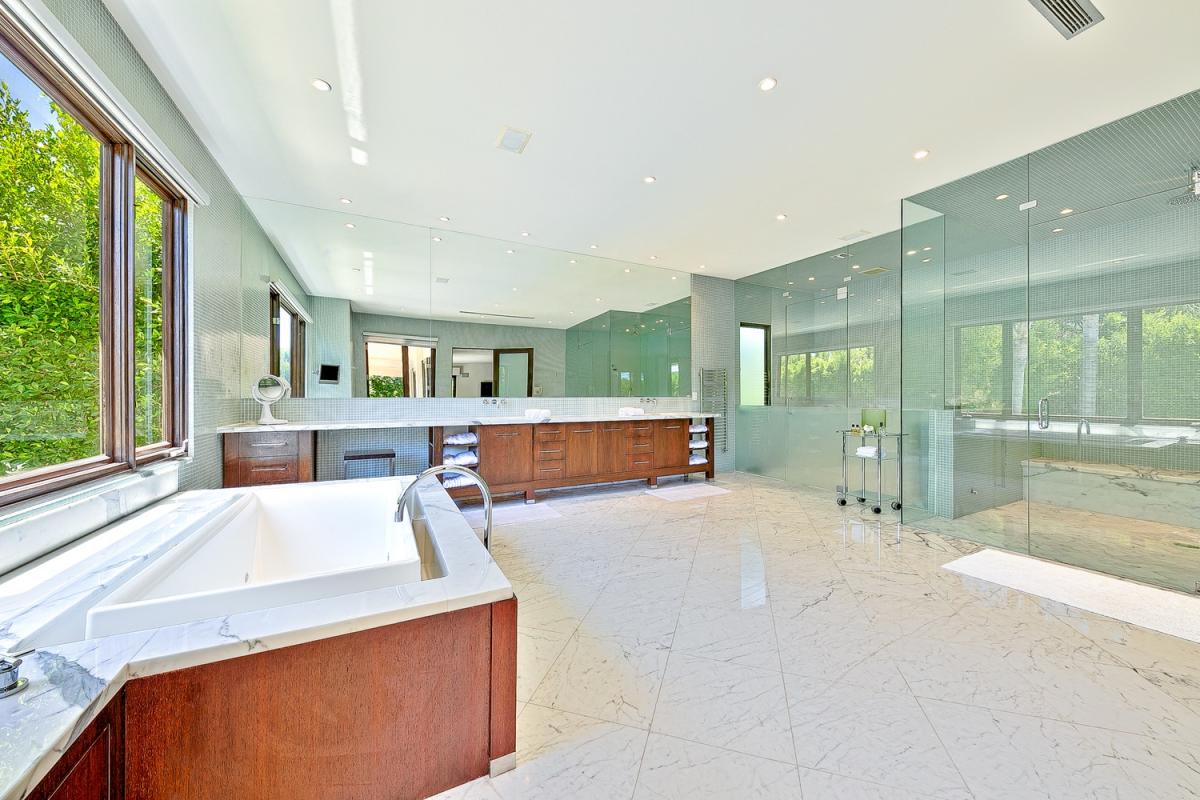 Villa Alta Paradise's grand foyer incoporates 25 foot ceilings with travertine tile floors and wrought-iron staircase to take your breath away. The kitchen offers Careera marble counters, Viking stove and sub-zero along with a built in Espresso station. You can blend the outdoors with indoors effortlessly with the large 10 foot glass doors that open to a relaxing pool/spa, outdoor (covered) fireplace, and patio lounge.