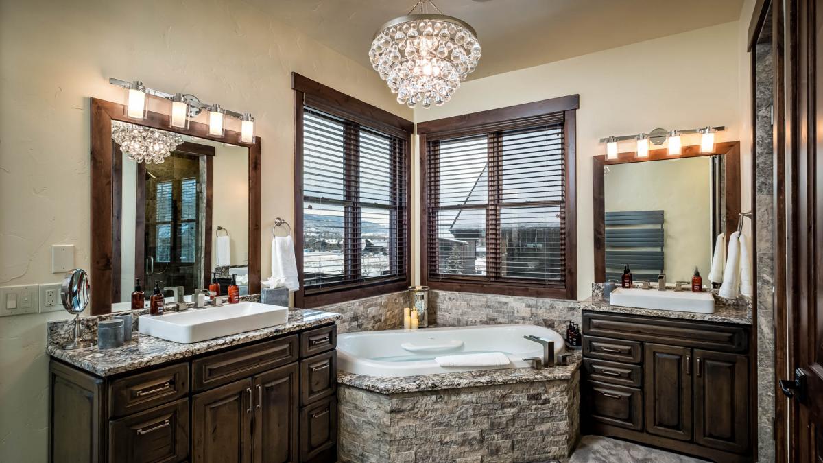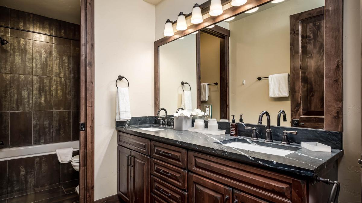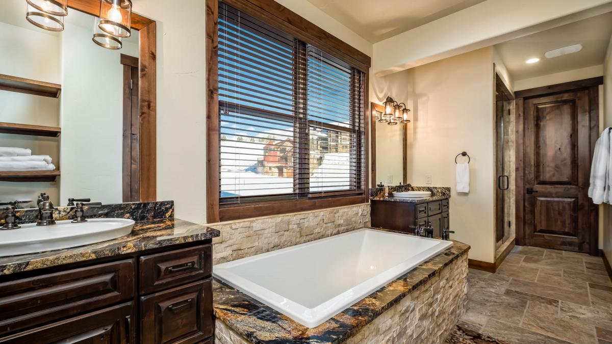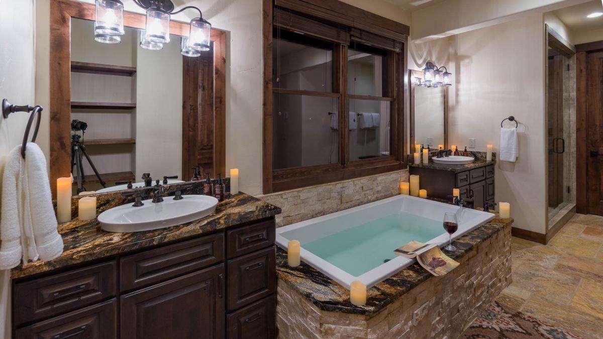 This home boasts two luxurious master suites with absolutely spectacular en suite bathrooms that include indulgent soaking tubs for your tired bones after a day skiing. These master suites are a perfect retreat for that book you just can’t put down. The top-level master offers additional bedding with two Twin beds and a television in the loft accessible by a short ladder.