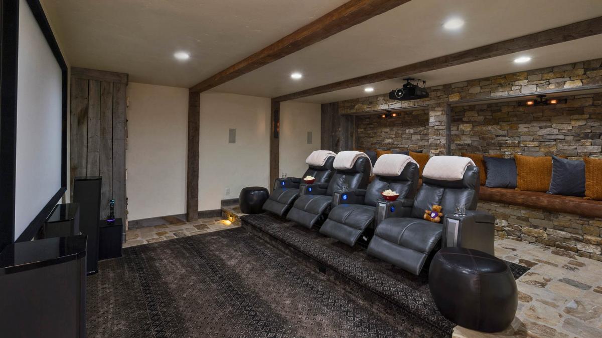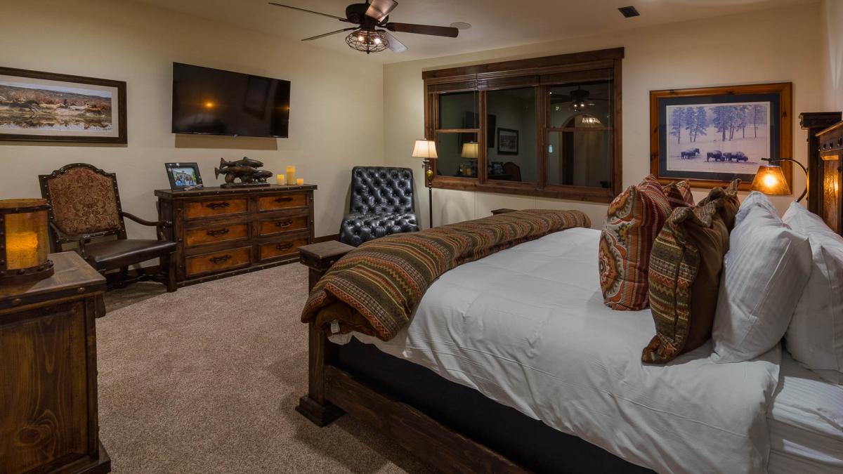 Each with its own private bath, the split king bedroom and the bunk room can accommodate eight more guests for a total occupancy of 14. You’ll enjoy the middle and lower level with the private hot tub, an enviable home theater that comfortably seats a large group, the wet bar, huge built in-game table, and super fun pinball machine that kids of every age will love! The double washer and dryer sets mean you won’t have to overpack, but if you do, you’ll find plenty of storage space for your belongings with ample drawer and closet space throughout Appaloosa Mountain Lodge. With over 1,000 square feet of deck space, this residence begs you to appreciate the irresistible mountain and sunset views.