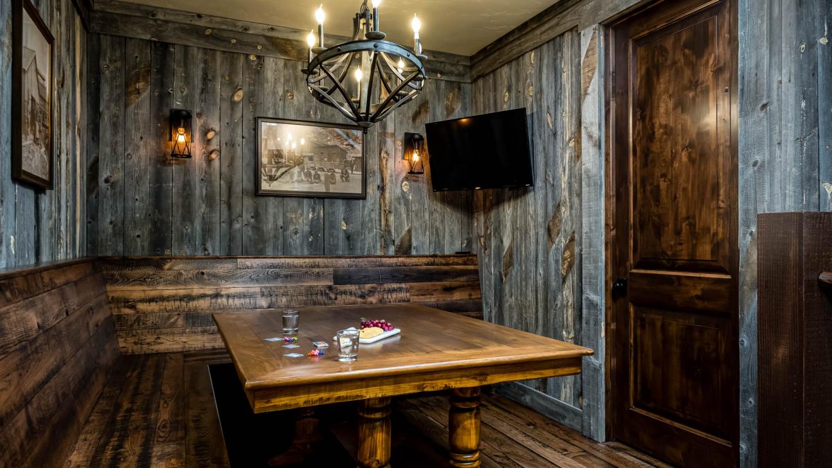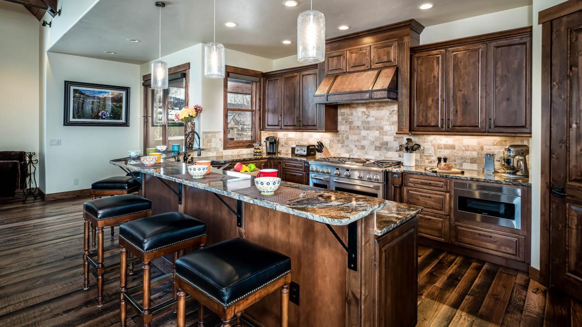 The cathedral ceilings, tasteful stone accents and huge windows on the top floor make for a bright and inviting space for your family to share stories from their ski day, cozy up to the large fireplace and enjoy hearty meals together. The spacious dining table seats 10 with additional seating for five at the oversized kitchen counter. The kitchen is central to this truly ‘great’ room offering high-end appliances that include a 6-burner stove and double oven, a warming drawer and a Nespresso machine for the coffee lovers in your group. You’ll also find the spacious covered patio with outdoor dining furniture and your gas grill on this level for year-round enjoyment.