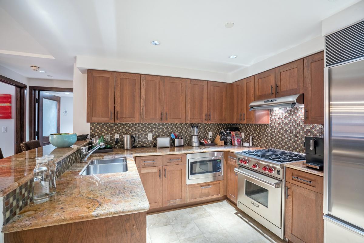 Cooks and chefs alike will enjoy the gourmet kitchen with stainless steel appliances, Jura ENA micro espresso maker, Cuisineart coffee maker and granite counters. Guests can enjoy their feast at the breakfast bar (seats two) or dining room seating four.