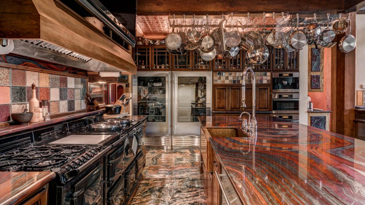 Chefs from every walk of life will revel in Rocking Chair Lodge's gourmet kitchen equipped with SubZero double refrigerators, freezer drawers, ice makers, wine and beverage refirgerators, AGA gas stove (6 ovens, 4 burners, 2 hot plates and warming plate). double Asko dishwashers, Miele coffee maker, Vent-a-Hood hood, convection oven/microwave, copper farm sinks and double islands featuring banded iron stone. Guests can gather at the 12 seat granite dining table with space for an additional 4 at the bar.