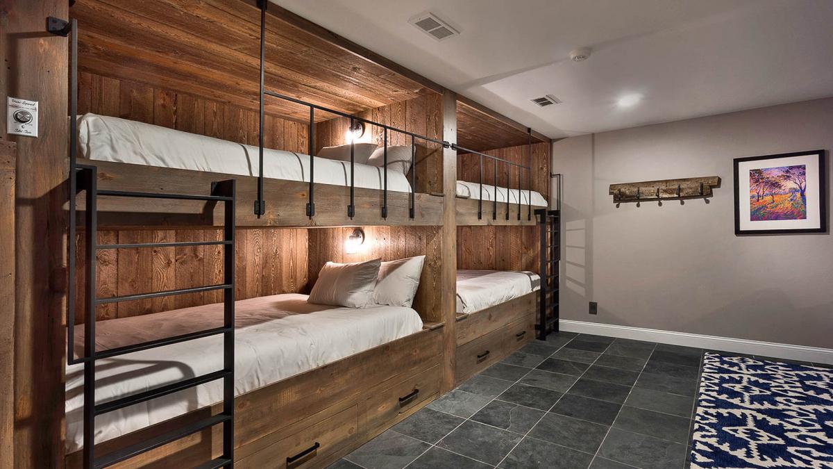 The lower level bunk/rec room is the perfect place for teens or young adults. 4 built in queen beds surround a monster 75" flat screen TV for the ultimate movie or sports experience. The rec room opens to the private hot tub deck where you can relax and experience the peace of the mountain view after your day of adventure on the slopes.