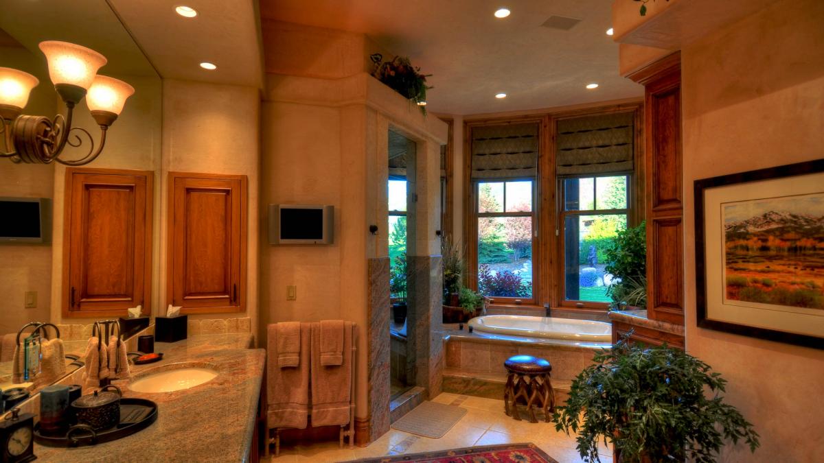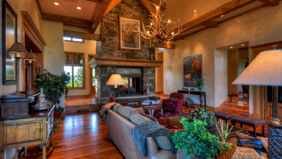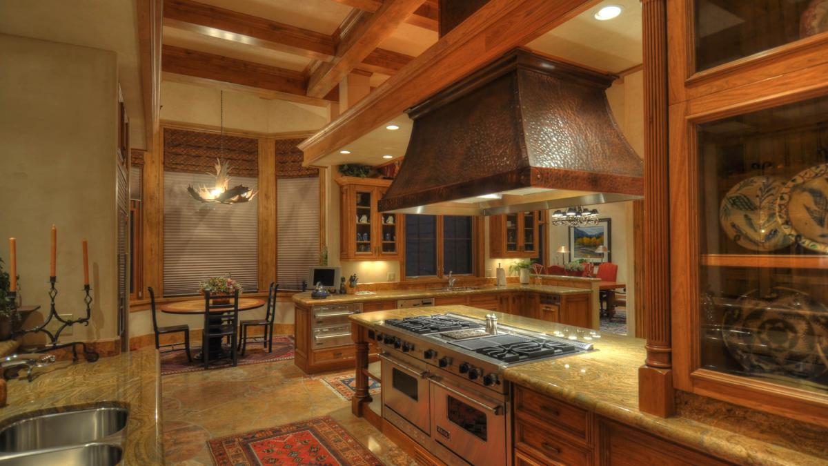 Guests will immediately be greated by a two story rock fireplace which passes through to the Great Room featuring 25 foot ceilings, a large TV, and plenty of comfy seating to allow enjoyment of the massive windows and views. The kitchen is just off hte great room and will thrill chefs of every level. Granite counters, 6-burner gas stove, and copper hood area ll waiting to inspire a creative dinner to spring from the double oven and oversized refrigerator. The dinning room seats 12 comfortably and features windows with views, much like most rooms of the house.