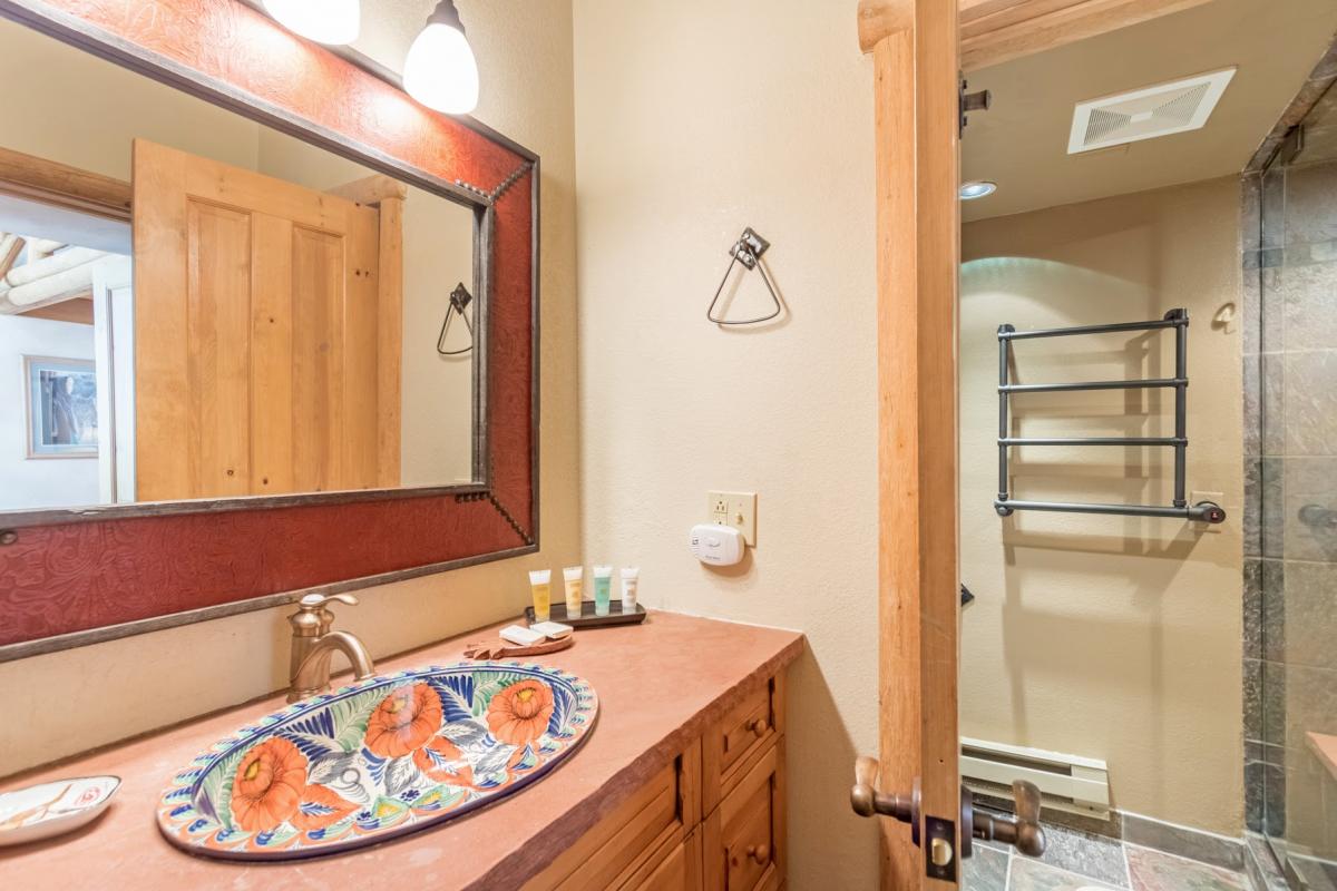 The condo makes efficient use of its space, incorporating a full size kitchen, sitting area with flat screen T.V., and dinning area into the thoughtful open-plan entry level. Upstairs, a cozy master bedroom with en suite Jacuzzi tub boats gorgeous mountain views. Two creative lofts with comfy sleeping set-ups share the upstairs bathroom, which features a walk-in steam shower and separate vanity area for added privacy.