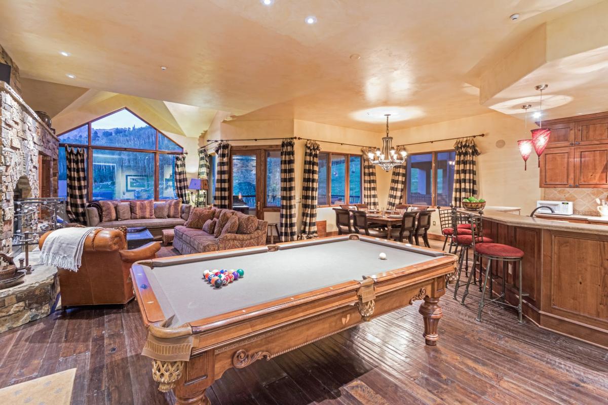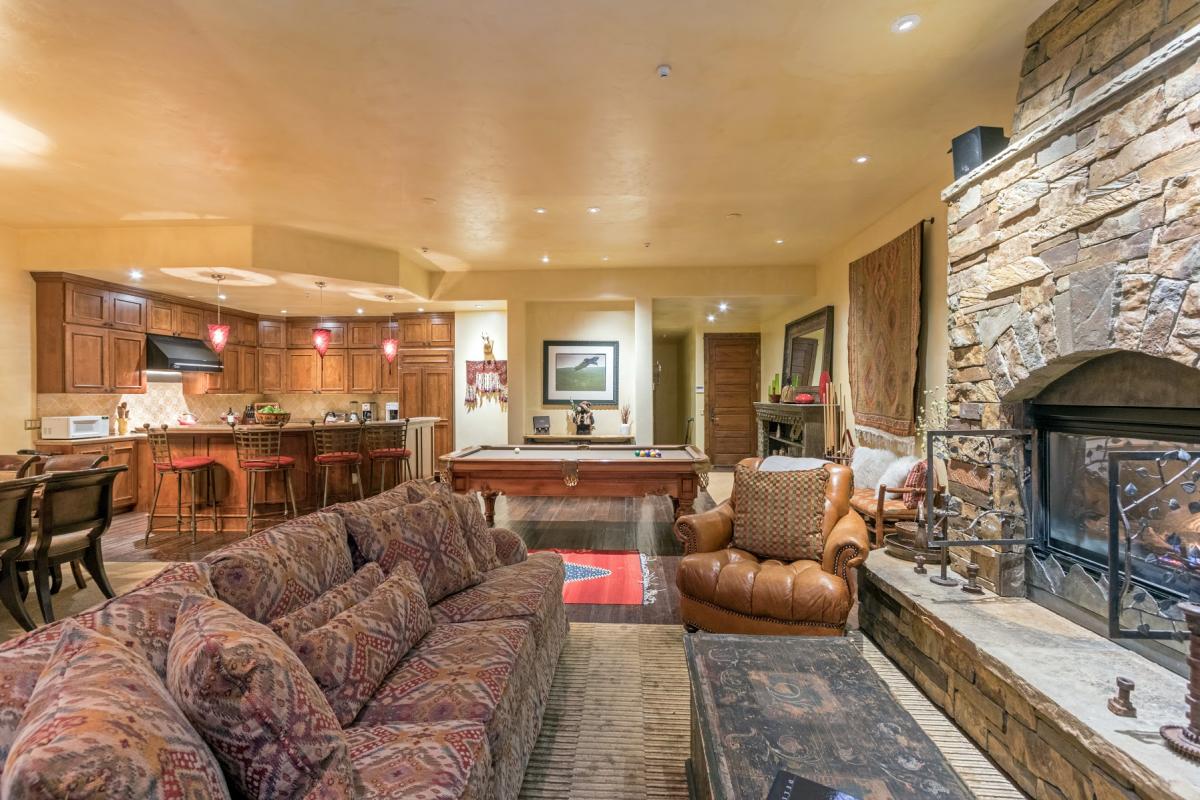 Step into the great room and be wowed by views of the San Sophia Ridge. Sit by the fireplace or play pool or whip up a yummy meal in the kitchen that has granite countertops and a Viking gas range. Watch the skiers go by while you soak in your own private hot tub on the deck which overlooks the Misty Maiden. Also on this level is the master suite, complete with a large sitting area, TV, deck and large bathroom with a two-sided gas fireplace to warm both the bedroom and bathroom. The master bathroom has both a jetted tub and a steam shower.
