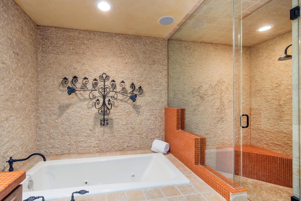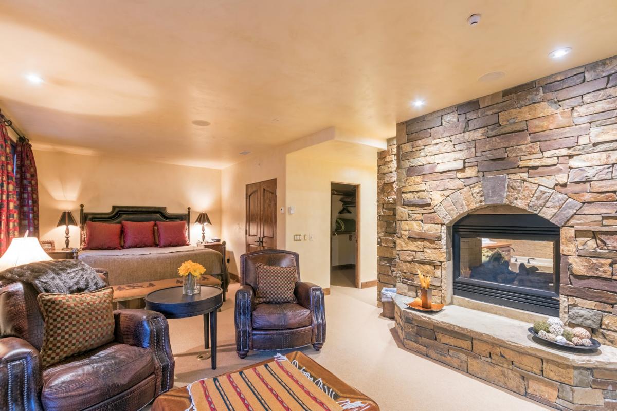 - Bedroom 1: Primary with king bed, en suite bathroom with shower and bathtub, walk-in closet, fireplace, sitting area, balcony