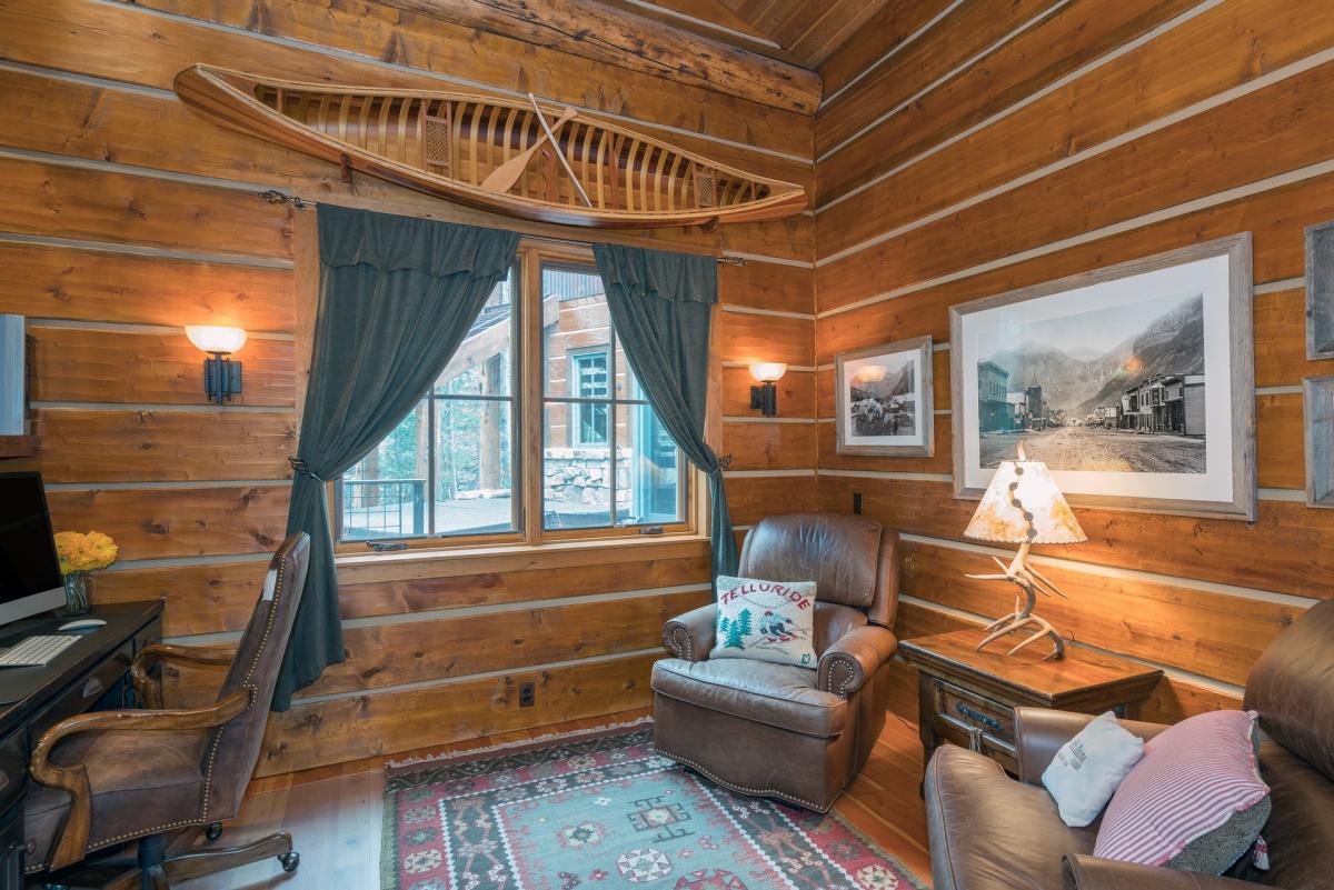 For those that need to get a bit of work done, an office complete with iMac computer, printer/fax and leather armchairs is located off the great room. Enjoy privacy here with the option of closing the glass French door access.