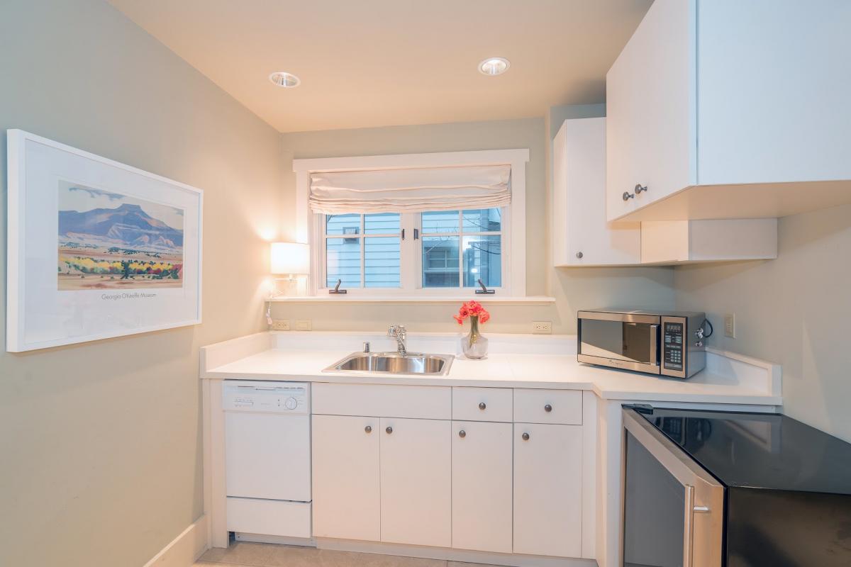Enter in through the large wooden door, which exhibits four pained-windows, letting in all the natural light the sunny side has to offer. To the left of the stone tile entrance is the den, with a large flat screen TV, love seat, two oversized chairs and two additional hand woven wicker chairs, allowing for plenty of room for friends and family to gather in this bright and airy space. North of this sitting area lies a small kitchenette with sink, mini dishwasher, wine cooler and microwave positioned adjacent to the bunk room. This guest room is fully carpeted with a twin bunk, and over sized closet. A full bath with stone tiled sink and large glass shower serves this guest room. Up only four steps ahead, is the second guest bedroom. A Queen Suite, fully carpeted with walk in closet and en suite bathroom detailed with stone countertops and a large glass shower with waterfall shower head and bench.