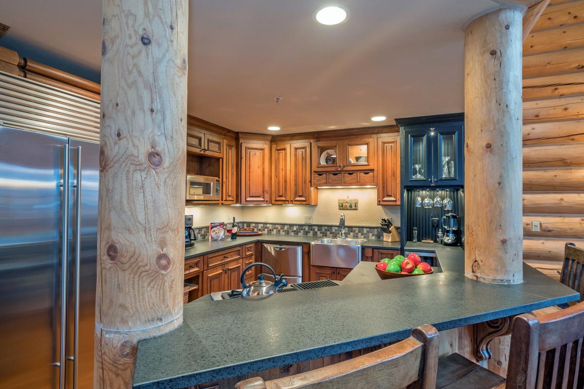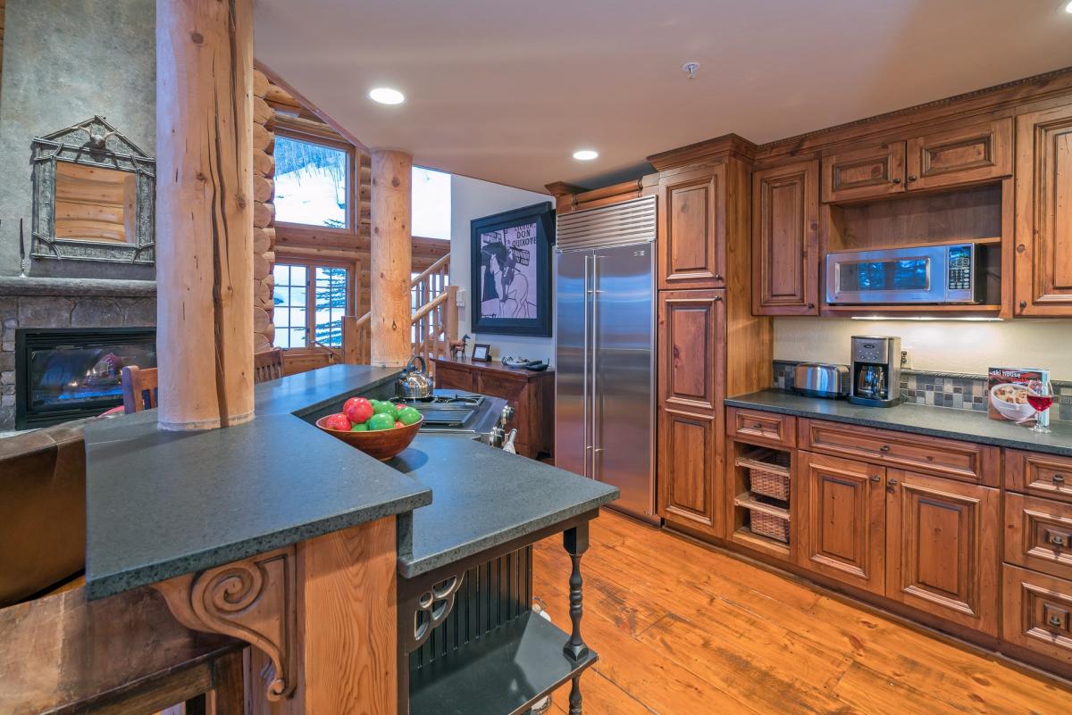 Chefs will enjoy the gourmet kitchen. Skiside offers high-end stainless steel appliances, farm-house sink, wine refrigerator, and soapstone counters. Enjoy your delectable creations at the breakfast bar (seating for three) or dining room (seating for six).