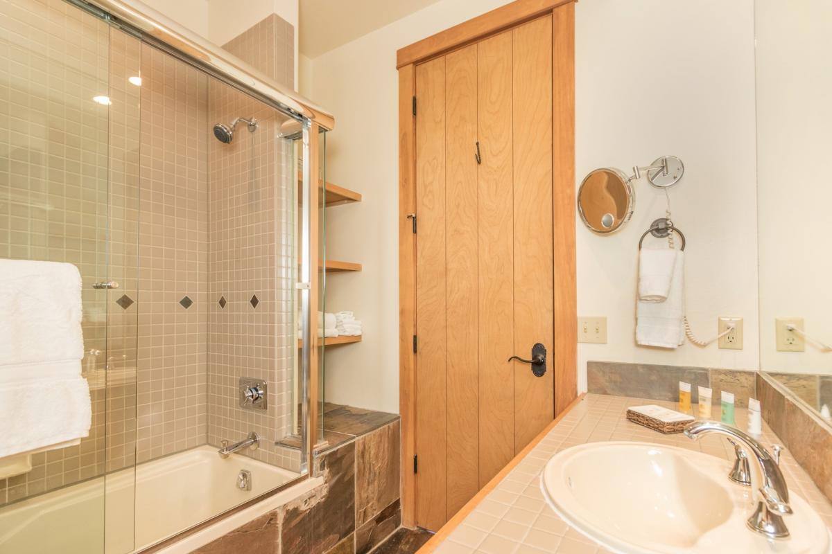 Unit 101: This 2 bedroom 2-bath unit is closest to the Chondola. The master bedroom has a king size bed and the second bedroom has a set of bunk beds with a full on the bottom and a twin on top. End unit, with fine views, most convenient to the Chondola and ski slopes, impeccably furnished and very comfortable. There is a parking space in front of the garage (garage is occupied by owner vehicle).